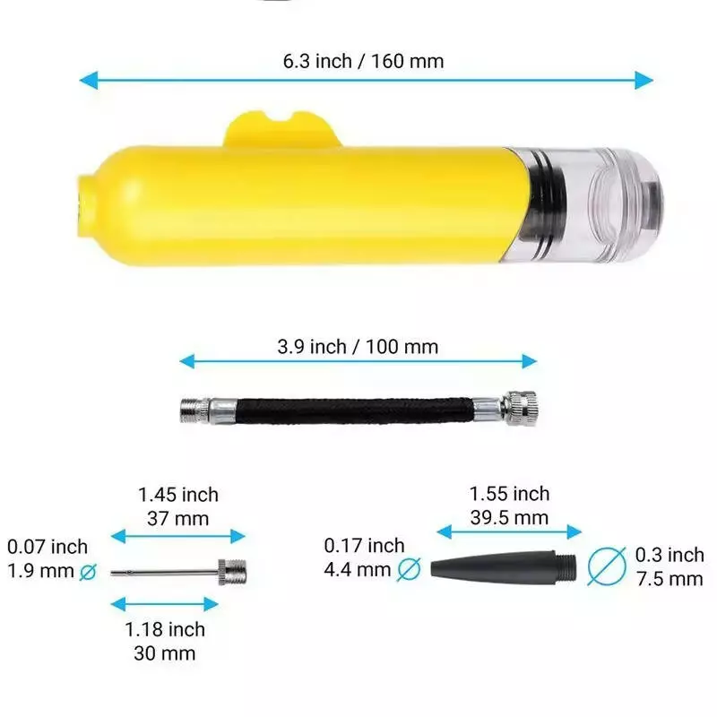 Этот насос оснащен тремя насадками: одной металлической иглой и двумя пластиковыми насадками. Металлическая игла предназначена для надувания мячей, обеспечивая надежное и быстрое наполнение. Пластиковые насадки подходят для работы с другими спортивными предметами, такими как насосы для надувных матрасов или плавательных кругов. Такая универсальность делает насос идеальным для различных типов надувных изделий.