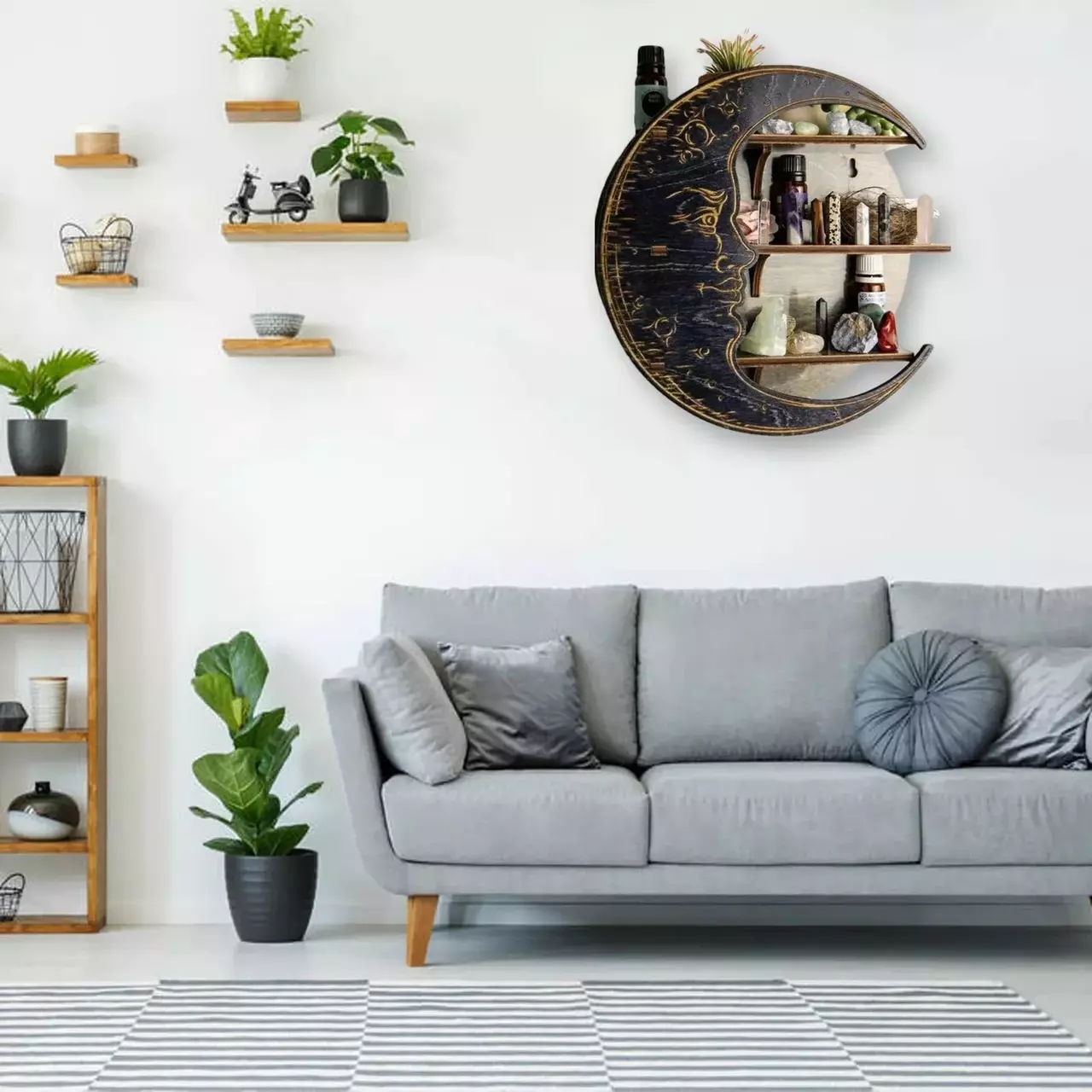 Настенная полка в форме луны изготовленная из дерева будет стильной