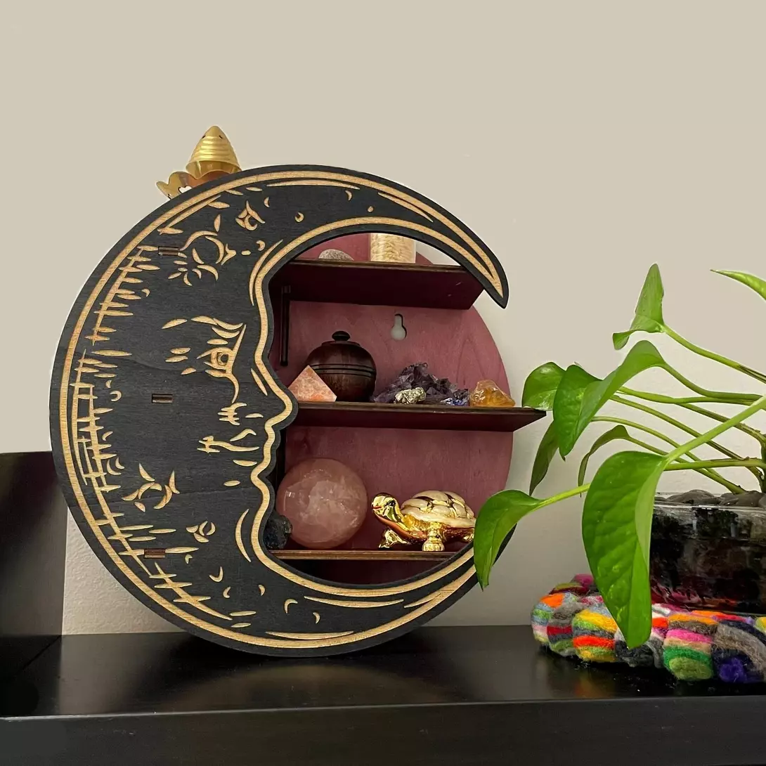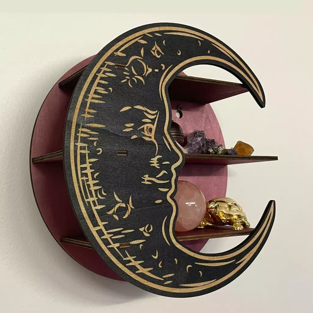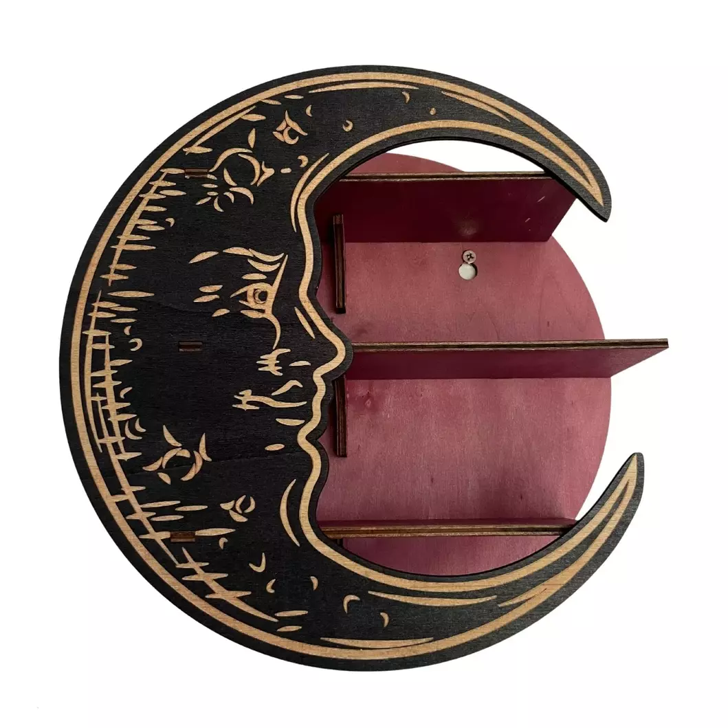Настенная полка в форме луны изготовленная из дерева будет стильной