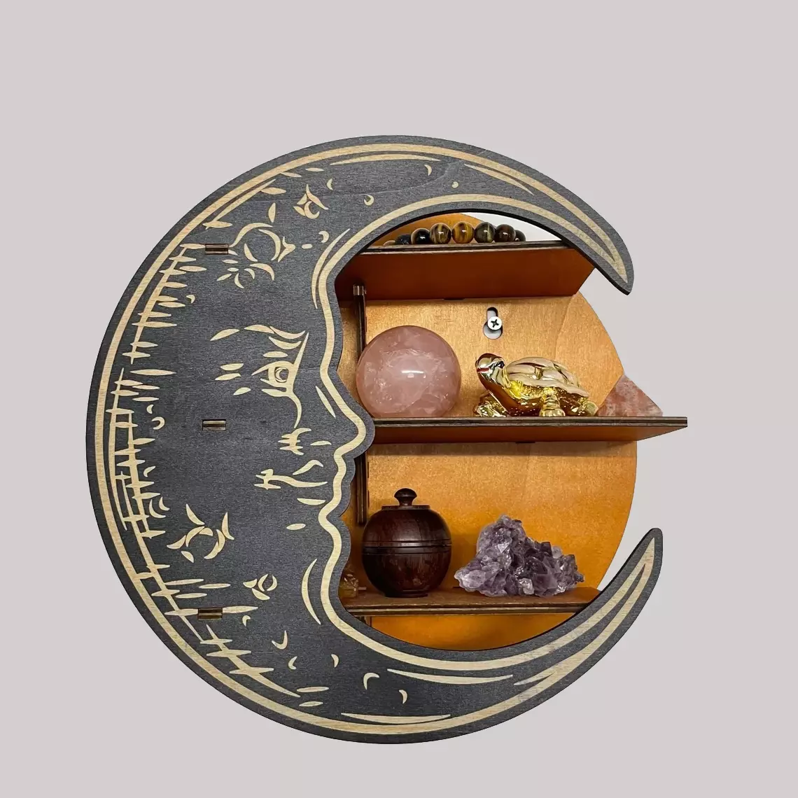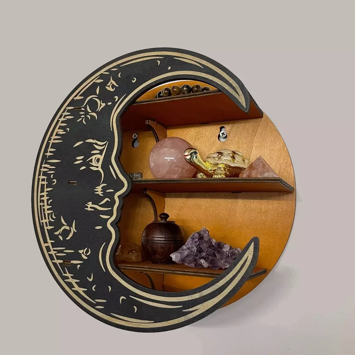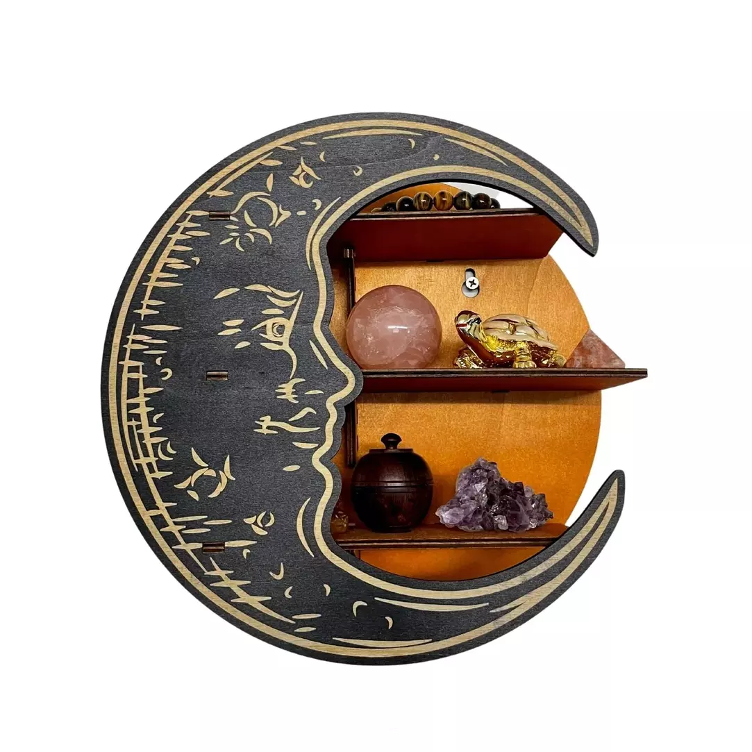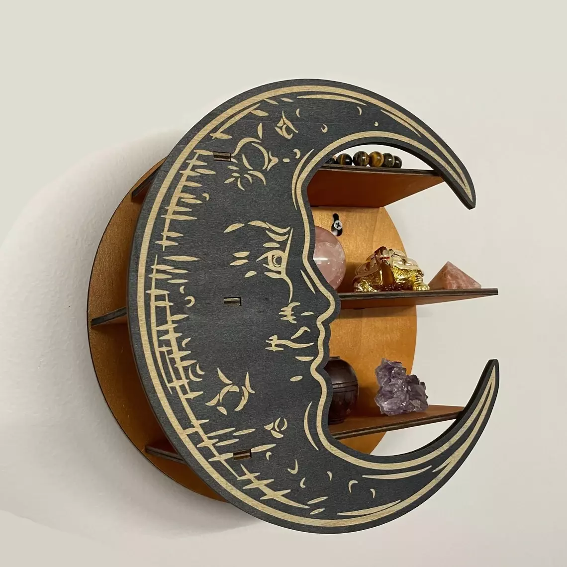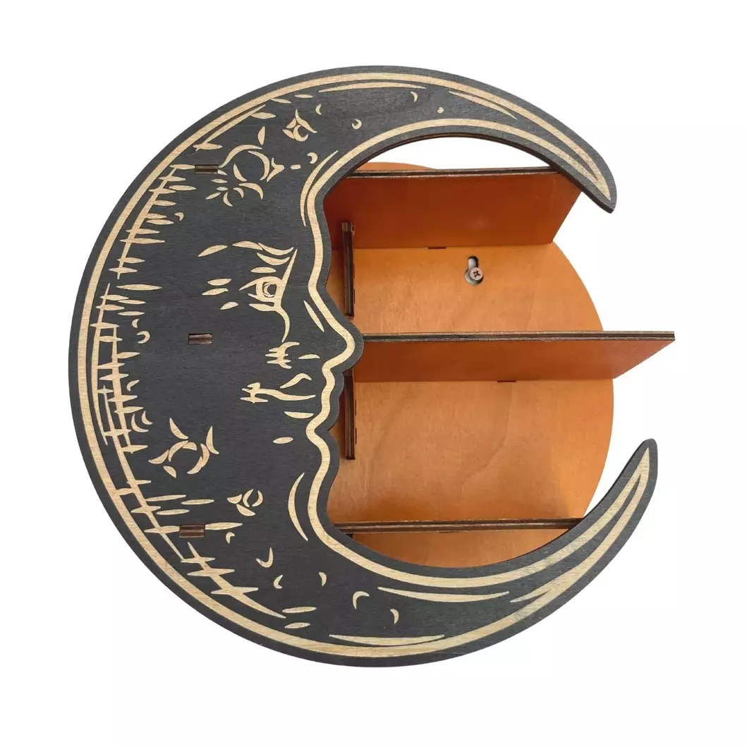 Настенная полка в форме луны изготовленная из дерева будет стильной