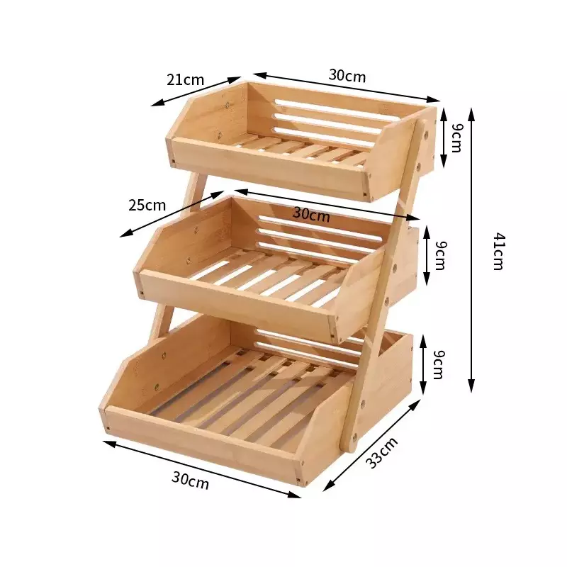 Настольная полка для фруктов и овощей из бамбука, полка бамбуковая для кухни трехъярусная, 30×33×41см
