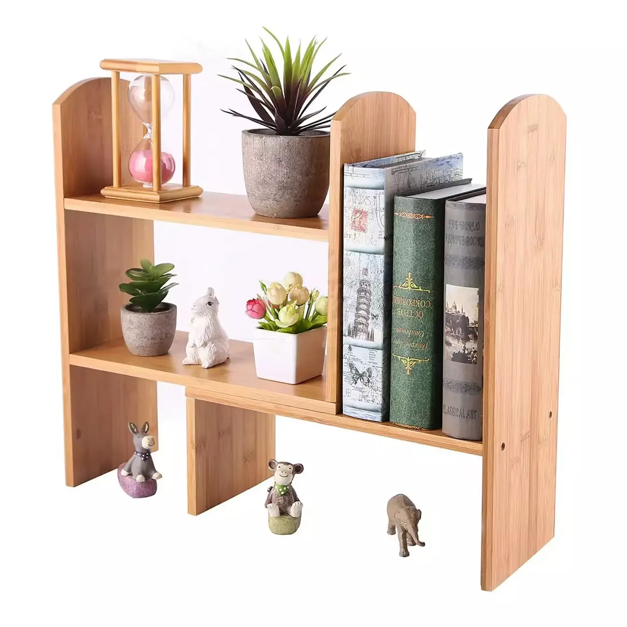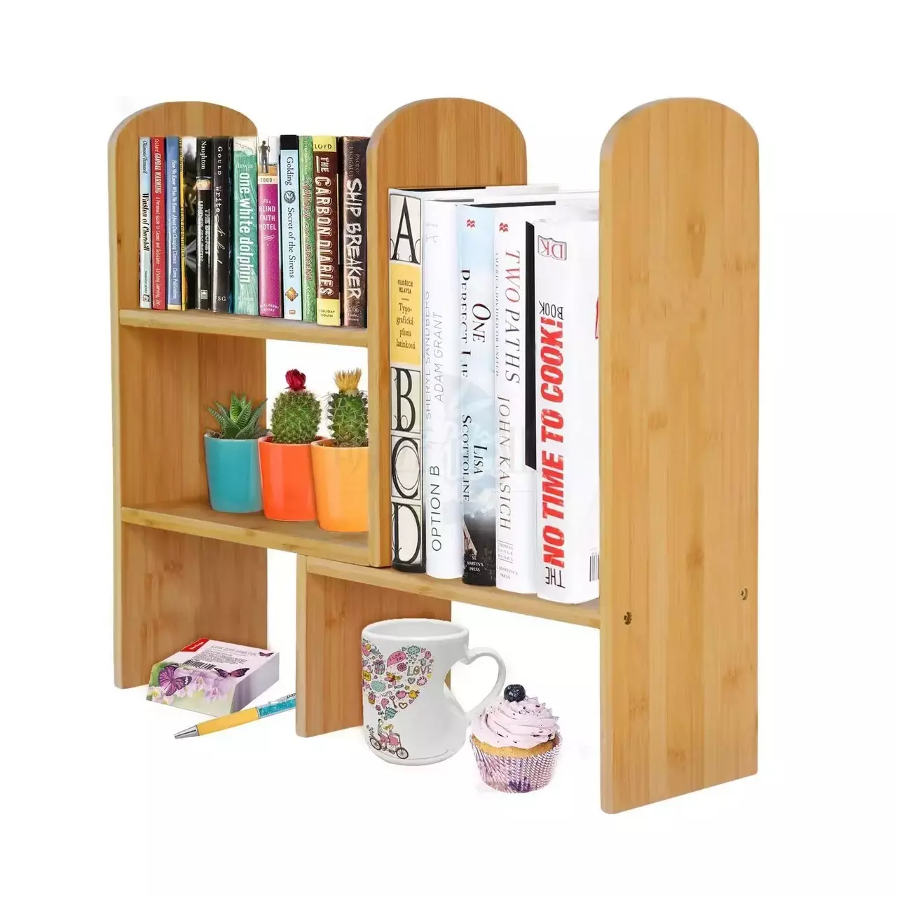 Настольная полка из бамбука для книг и аксессуаров с возможностью регулировки положения, 65×45×15см