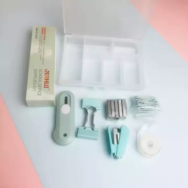 Комплектация: степлер и скобы 500шт, скрепки для бумаги 20шт, биндер 2шт, держатель для скотча, нож