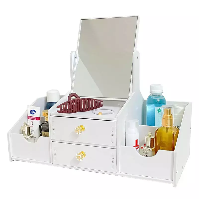 Настольный органайзер для косметики с зеркалом 16×21см, мини-шкафчик, комод для украшений белого цвета