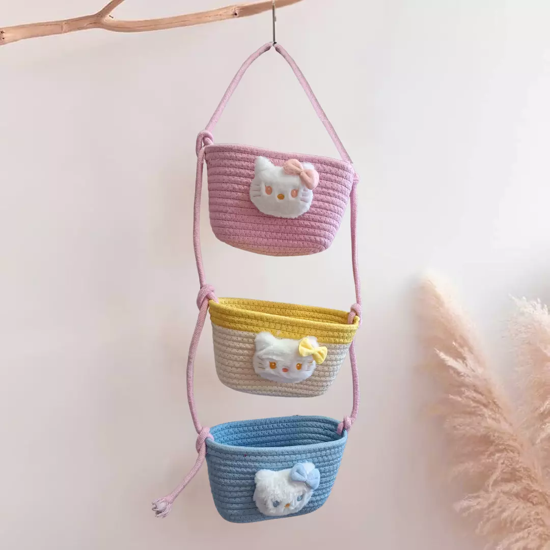 Навесной органайзер для детей | Плетеная корзина для хранения игрушек, аксессуаров в детскую комнату, Кот