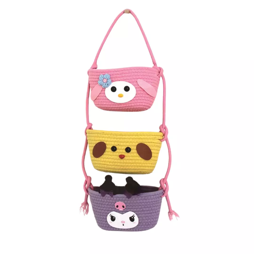 Навесной органайзер для детей | Плетеная корзина для хранения игрушек и аксессуаров, розовая