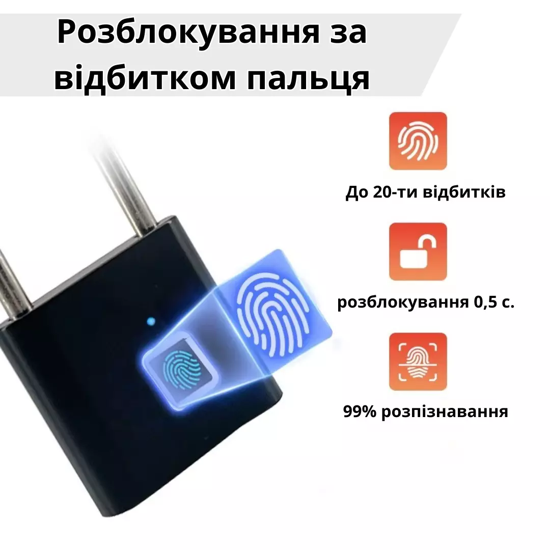 Навесной замок с отпечатком пальца.Умный замок со сканером отпечатка пальцев,биометрический черный