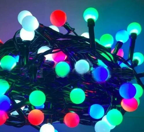 Новогодняя электрическая гирлянда с матовыми разноцветными крупными шариками 5 метров длиной, 1 режим