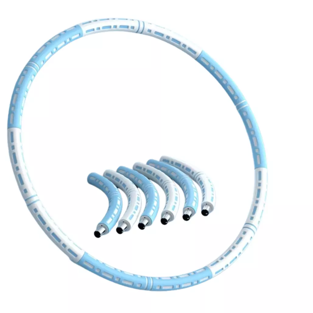 Обруч изготовлен из нержавеющей стали, что обеспечивает высокую прочность и долговечность. Пенная оплетка на ручках добавляет комфорта во время использования, позволяя сосредоточиться на тренировках без отвлечений. Обруч состоит из 8 секций, которые легко соединяются между собой, что делает его удобным для хранения и транспортировки.