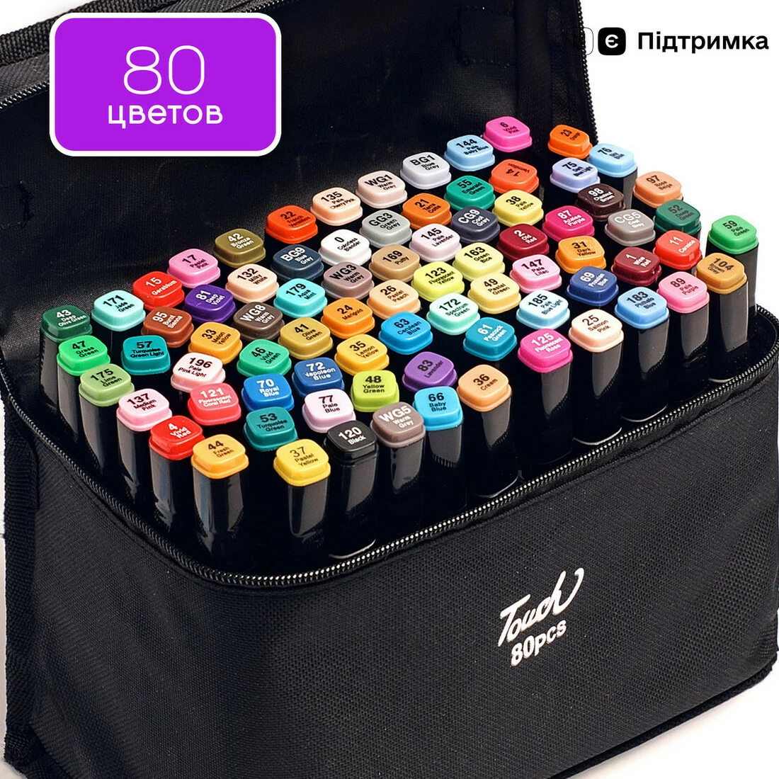 Большой набор скетч маркеров 80 цветов Touch Raven в черном чехле для рисования