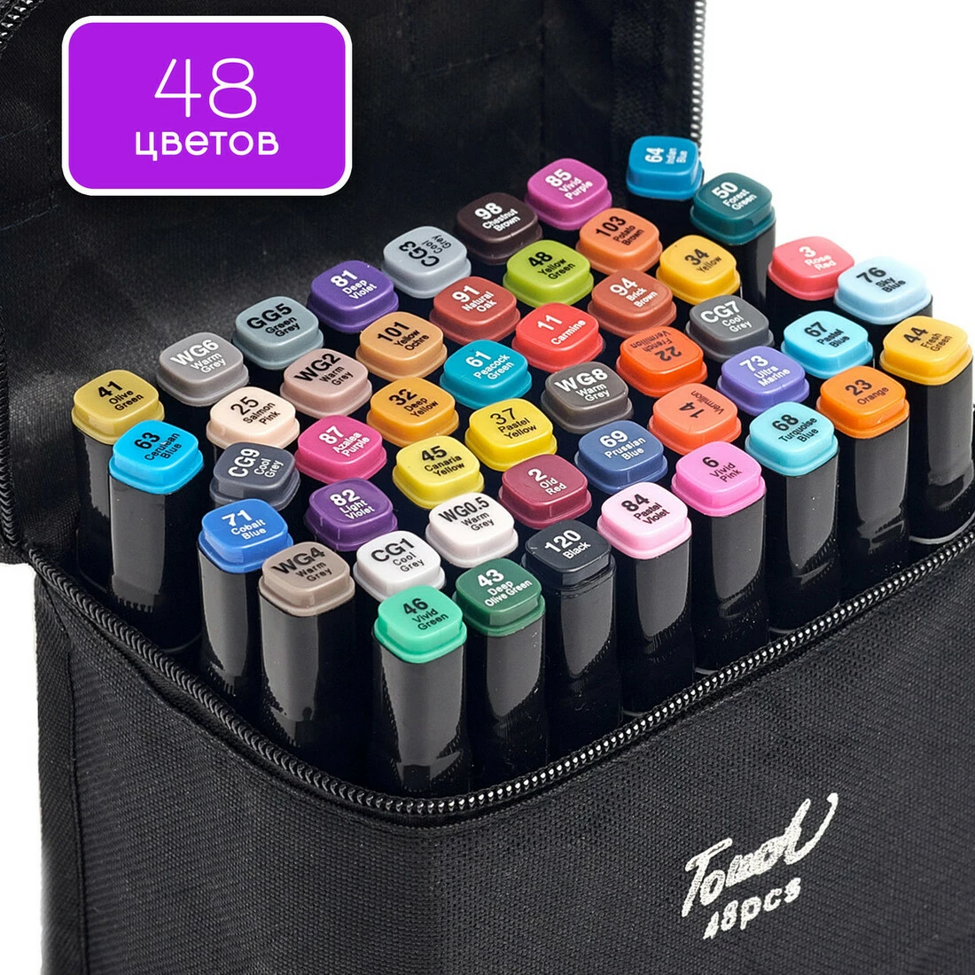 Огромный Набор скетч маркеров 48 цветов Touch Raven для рисования, в черном чехле