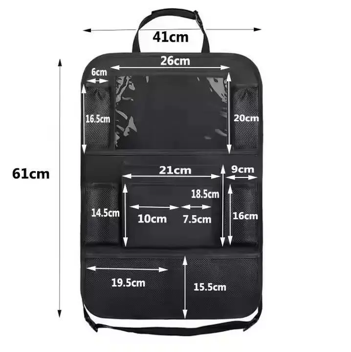 Этот автомобильный органайзер предназначен для хранения различных предметов в салоне вашего автомобиля, поддерживая порядок и удобство. Размером 61x41 см, он легко монтируется на спинку сиденья с помощью пластиковых карабинов. Прочный и надежный, органайзер выполнен из ткани оксфорд, которая защищает содержимое от влаги и загрязнений, обеспечивая долговечность и надежность.