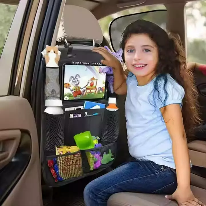 Органайзер имеет 10 различных отделений, включая сетчатые карманы с резинками для надежной фиксации мелких предметов. Среди них есть специальное прозрачное отделение на молнии для планшета, что позволяет удобно разместить и дать возможность просматривать любимые мультики вашему ребенку на заднем сидении. Это помогает избежать беспорядка и обеспечивает дополнительный комфорт вашему ребёнку во время поездки.