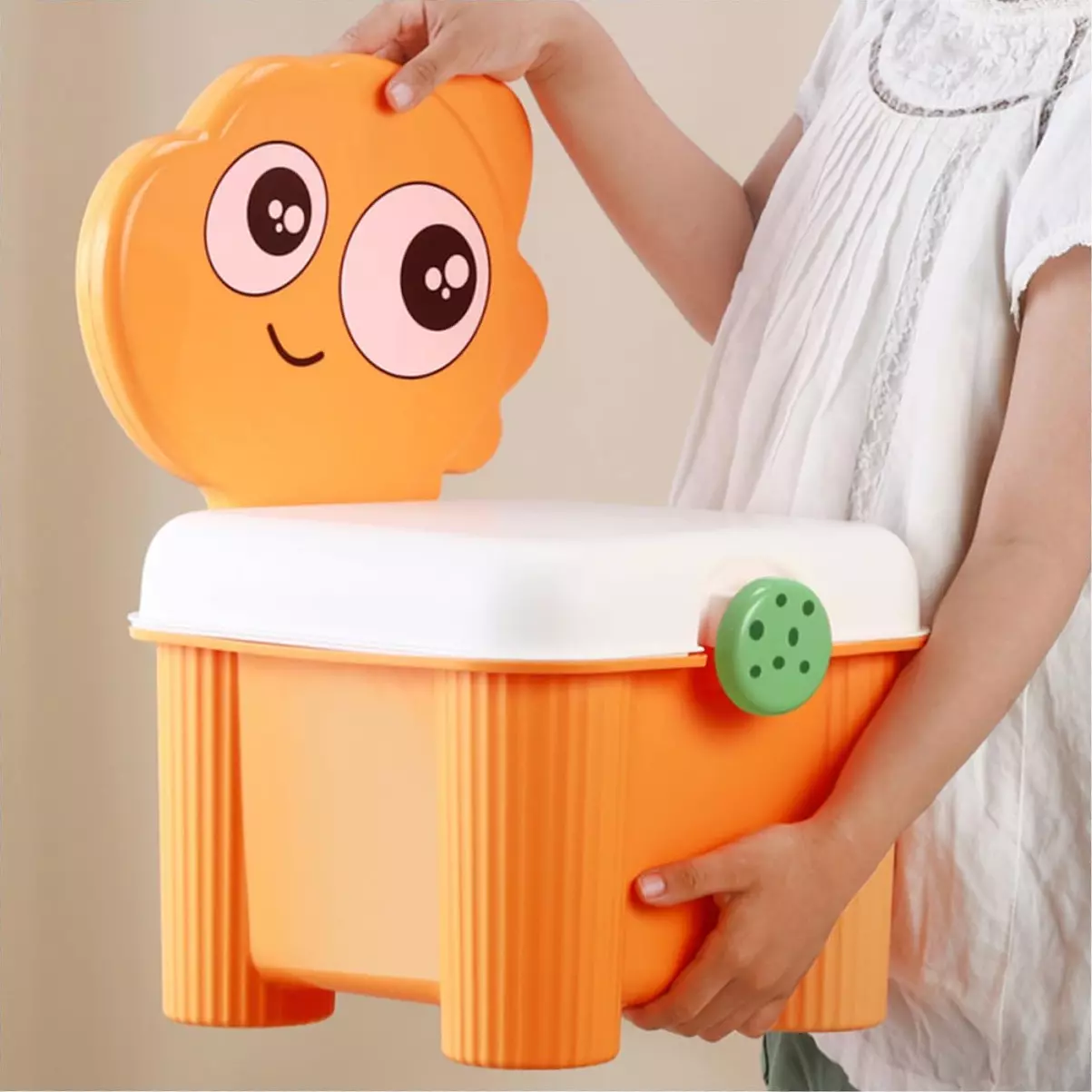 Органайзер для хранения игрушек с крышкой, детский стул-органайзер для игрушек, 34,5×25×18см, оранжевый цвет