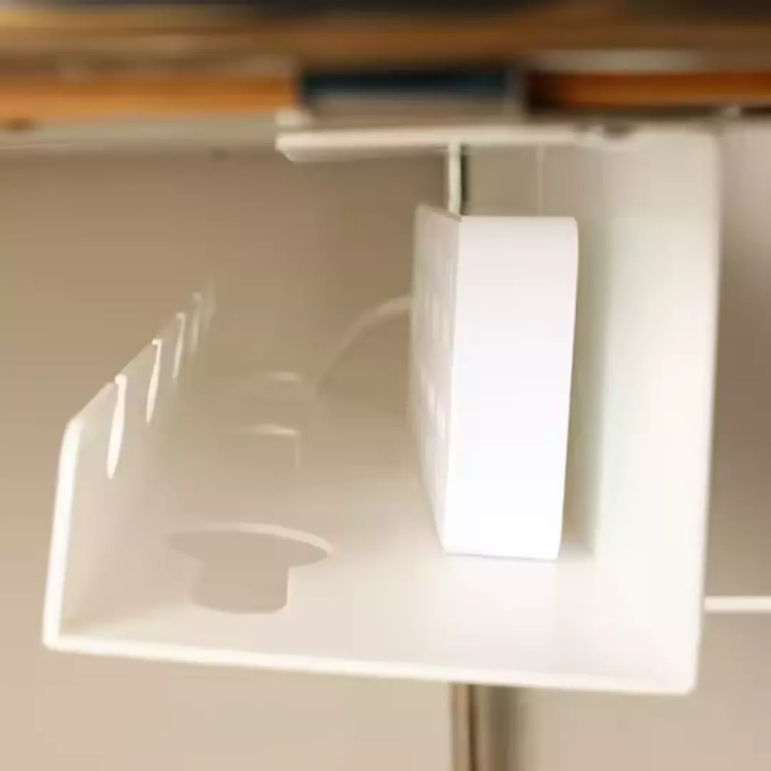 Минималистичный дизайн в белом цвете идеально впишется в любой интерьер, создавая профессиональный и аккуратный вид рабочего пространства. Лоток помогает не только организовать кабели, но и упростить их поиск и доступ при необходимости, что особенно полезно для рабочих мест с большим количеством подключенных устройств.
