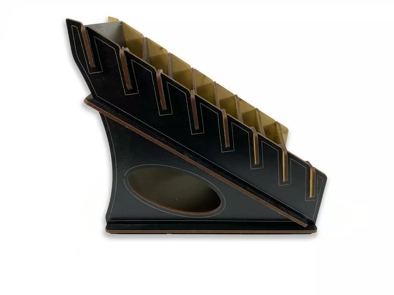 Изготовленная из высококачественного натурального дерева и окрашенная в черный цвет, наша подставка-органайзер обладает прочной конструкцией и стильным дизайном. Она имеет удобные отделения для размещения различных видов специй, обеспечивая вам легкий доступ к нужному ингредиенту во время приготовления блюд.