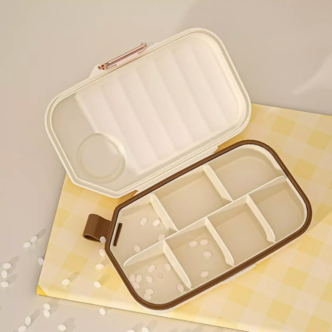 Элегантный бежевый цвет и компактный размер делают этот органайзер практичным и стильным решением для повседневного использования. Заботьтесь о своем здоровье с комфортом, сохраняя порядок и уверенность в приеме лекарств.