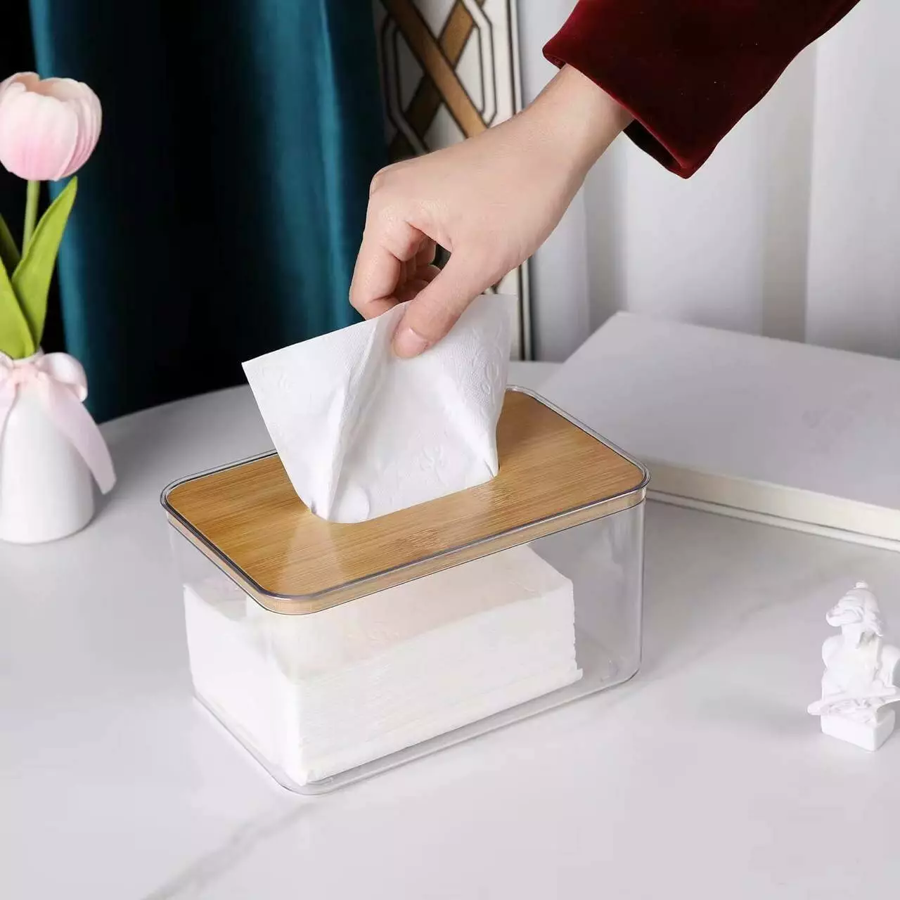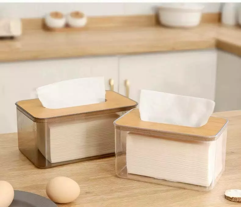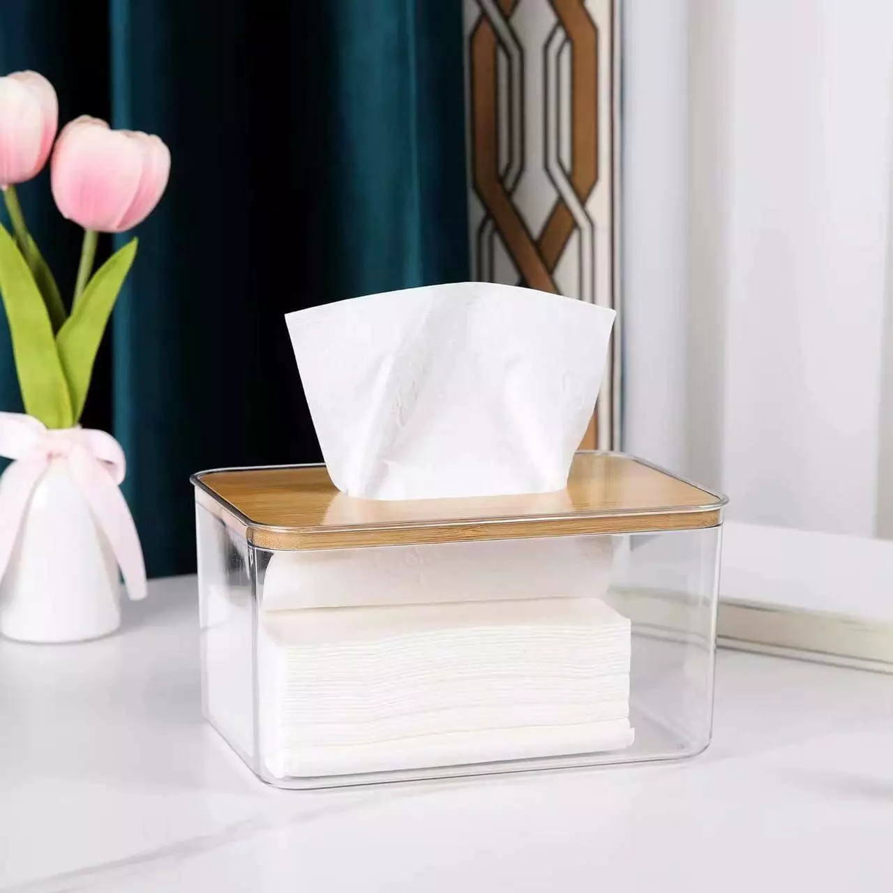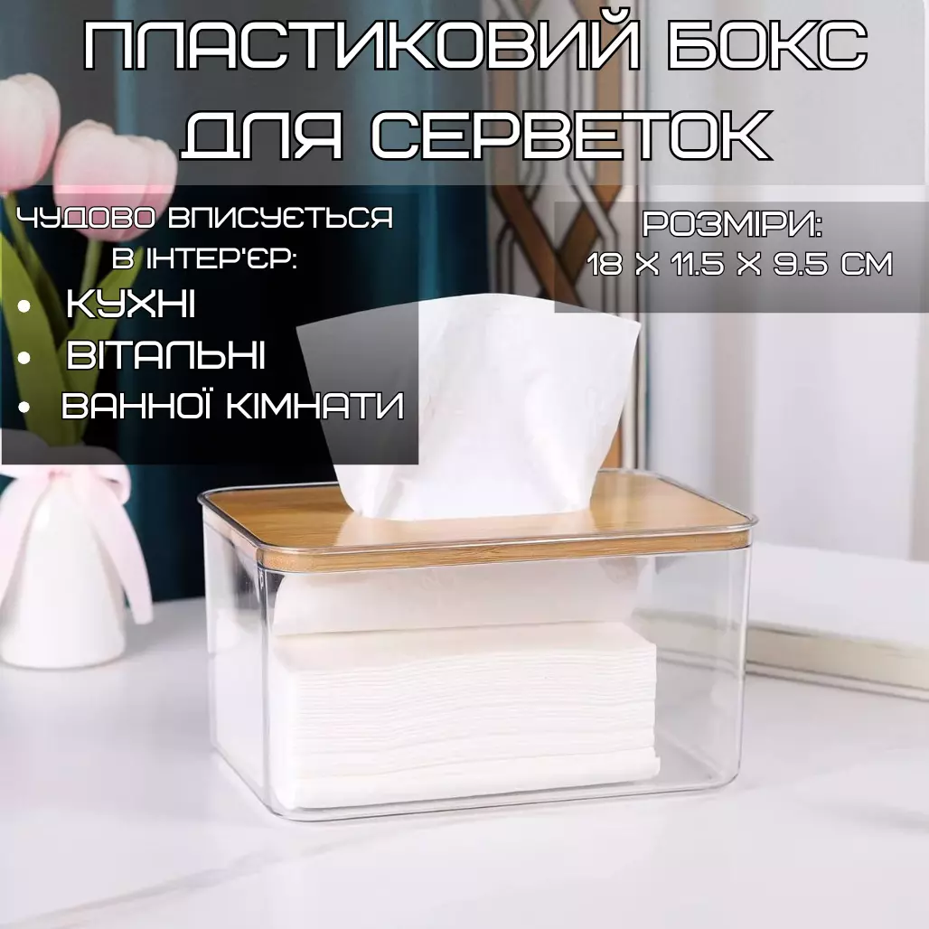 Oрганайзер-контейнер для салфеток,пластиковый Размер M с деревяной крышкой