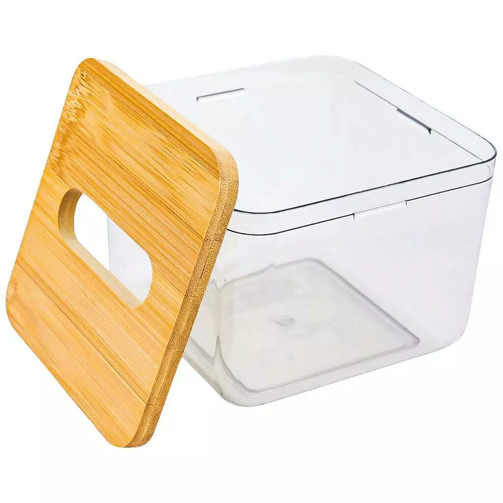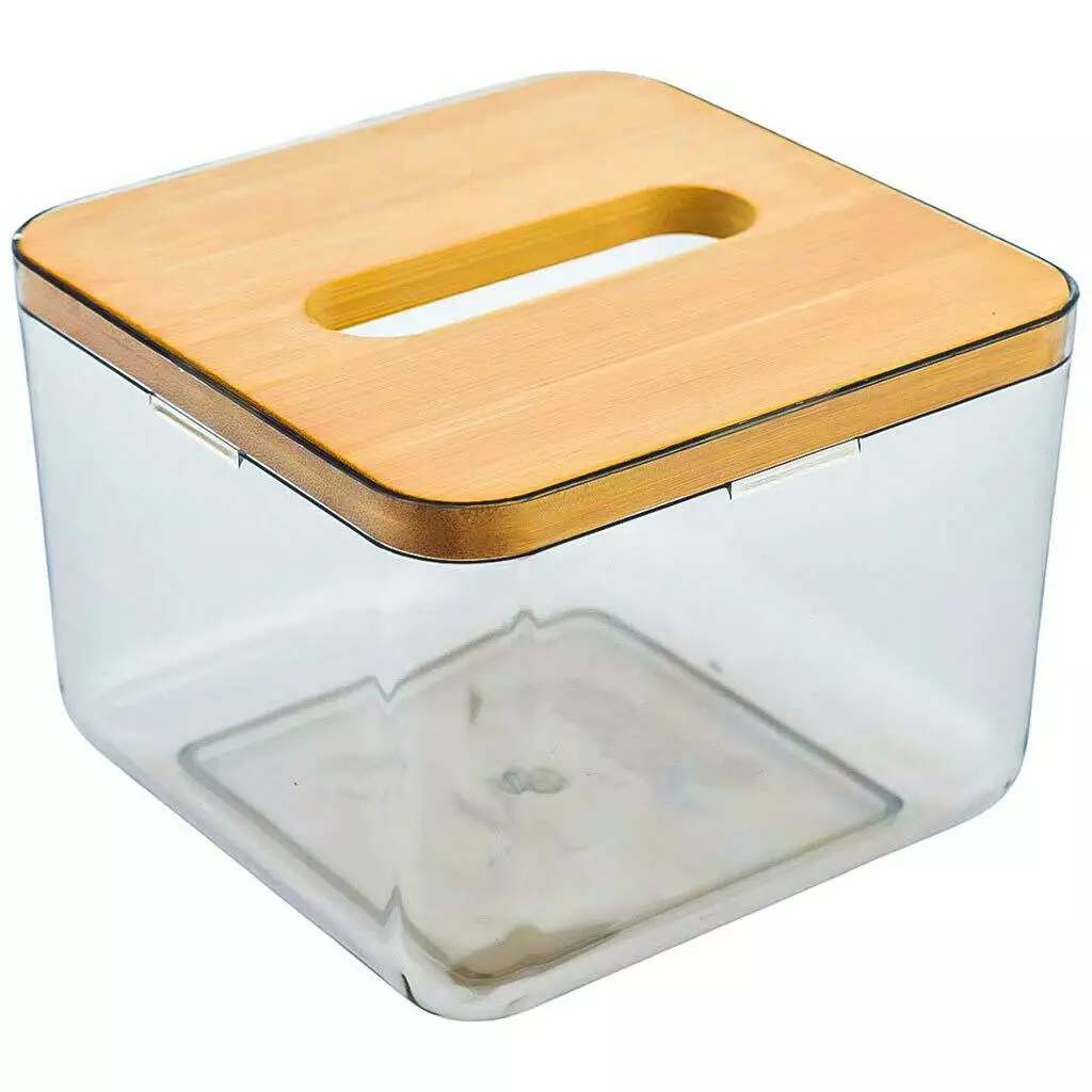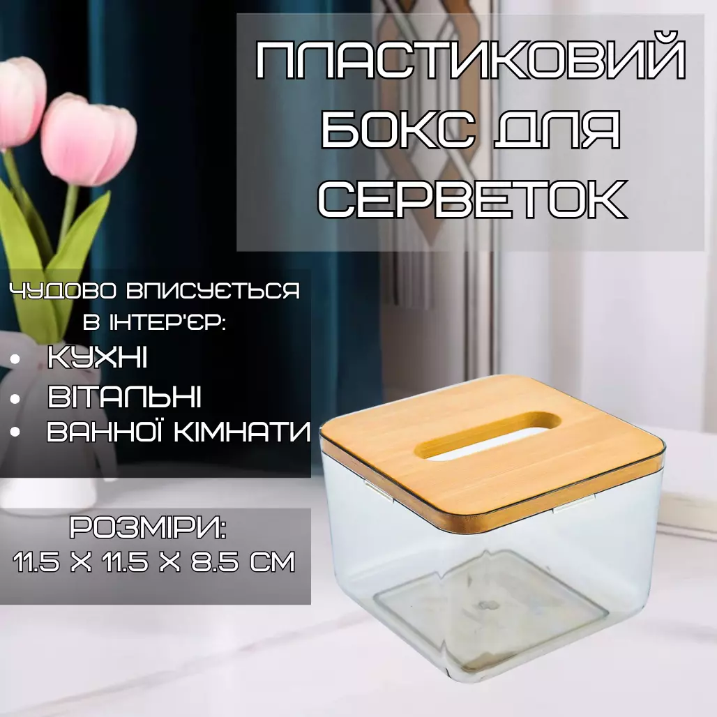 Oрганайзер-контейнер для салфеток,пластиковый Размер S с деревяной крышкой