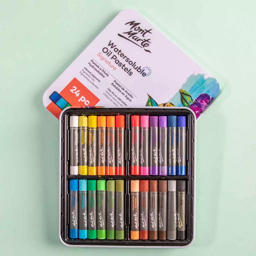 Пастель масляная водорастворимая в жестяной упаковке Mont Marte, Signature упаковка 24шт