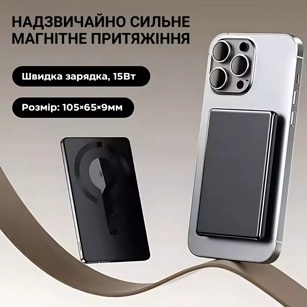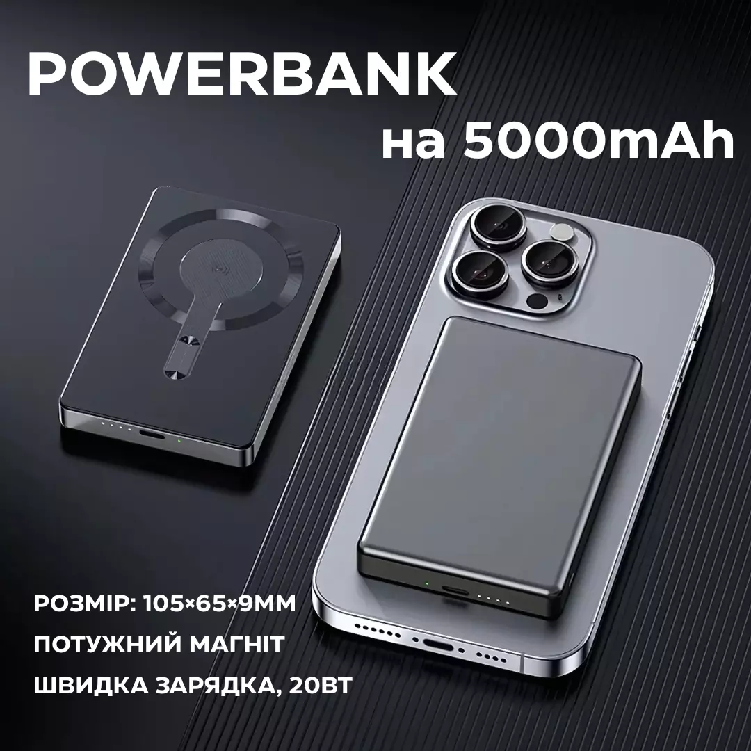 Магнитное крепление обеспечивает надёжную фиксацию аккумулятора на корпусе телефона, а беспроводная зарядка активируется автоматически при соприкосновении с устройством. Благодаря ёмкости 5000 мАч можно легко подзарядить смартфон, а технология быстрой зарядки мощностью 20 Вт сокращает время ожидания. Светодиодный индикатор отображает уровень заряда, а встроенные системы защиты предотвращают перегрев и перегрузку.