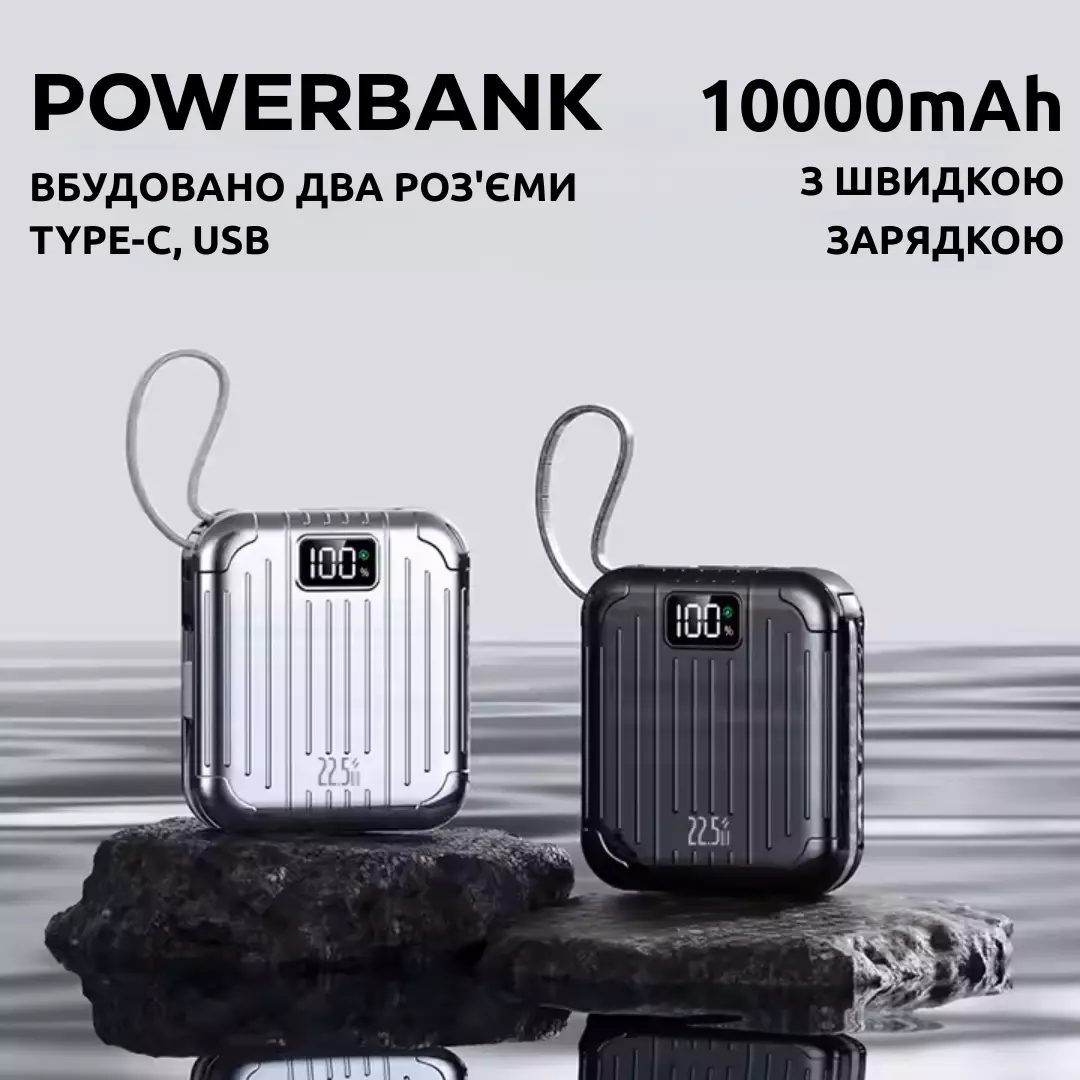 Ёмкость 10000 мАч позволяет заряжать смартфоны и другие гаджеты с поддержкой быстрой зарядки 22.5Вт. Входная мощность 20 Вт позволяет самому повербанку быстро восстановить заряд. Удобный цифровой дисплей показывает заряд в процентах.