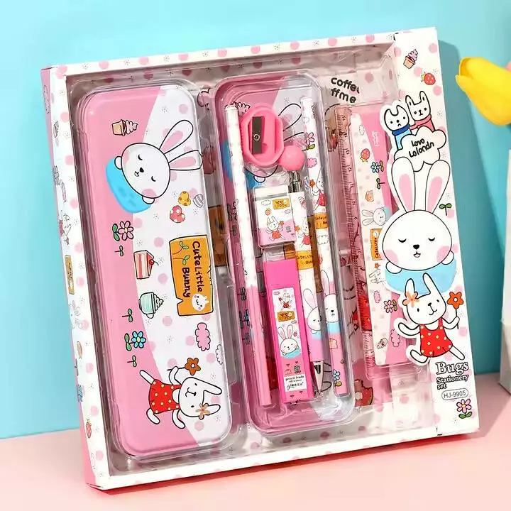 Пенал школьный "Кролики" с канцелярскими принадлежностями для школы в комплекте