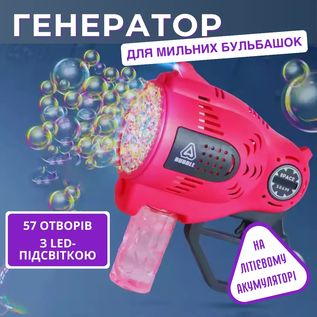 Пистолет для мыльных пузырей для детей, генератор мыльных пузырей с подсветкой на аккумуляторе, розовый
