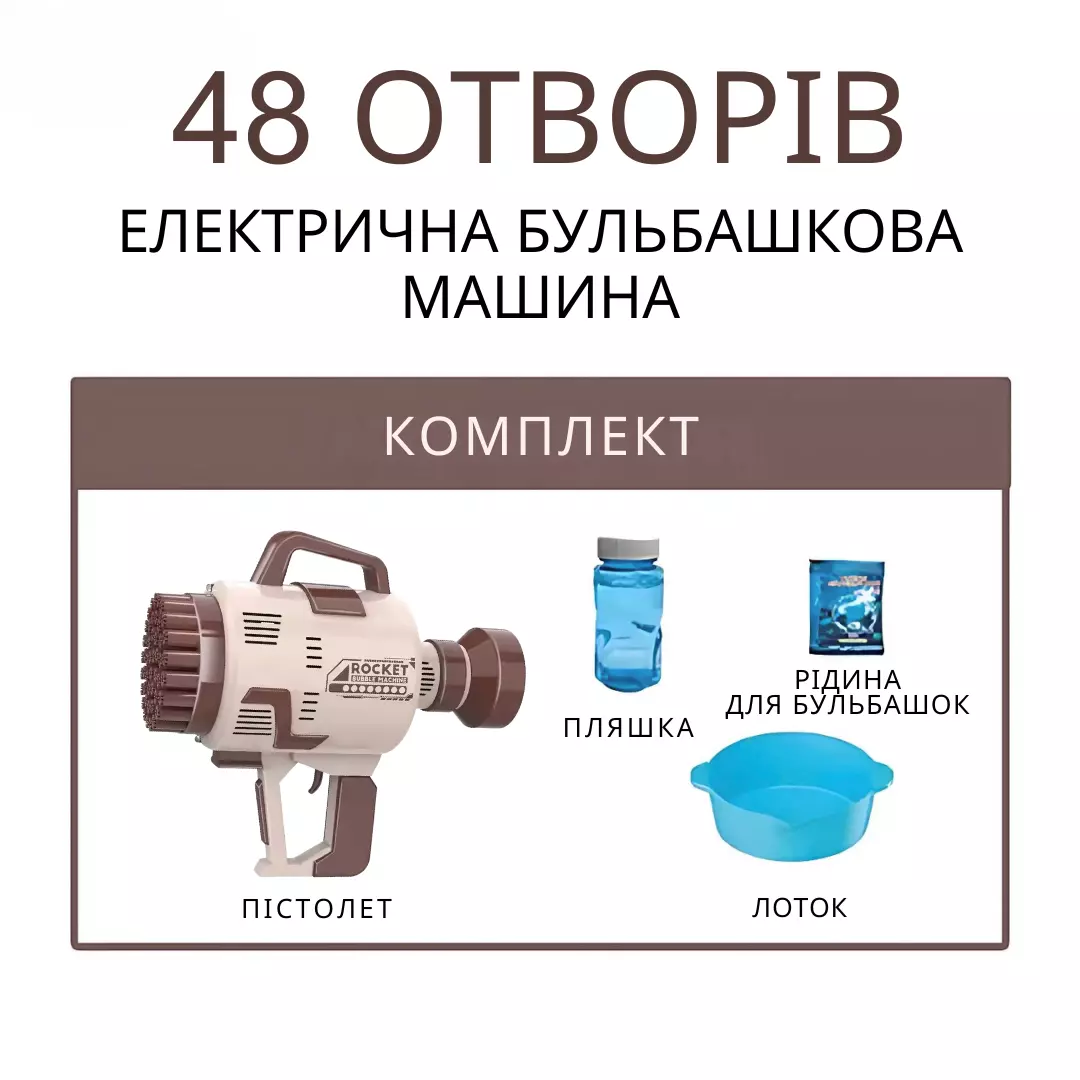 Пистолет для мыльных пузырей на батарейках, генератор мыльных пузырей, коричневый