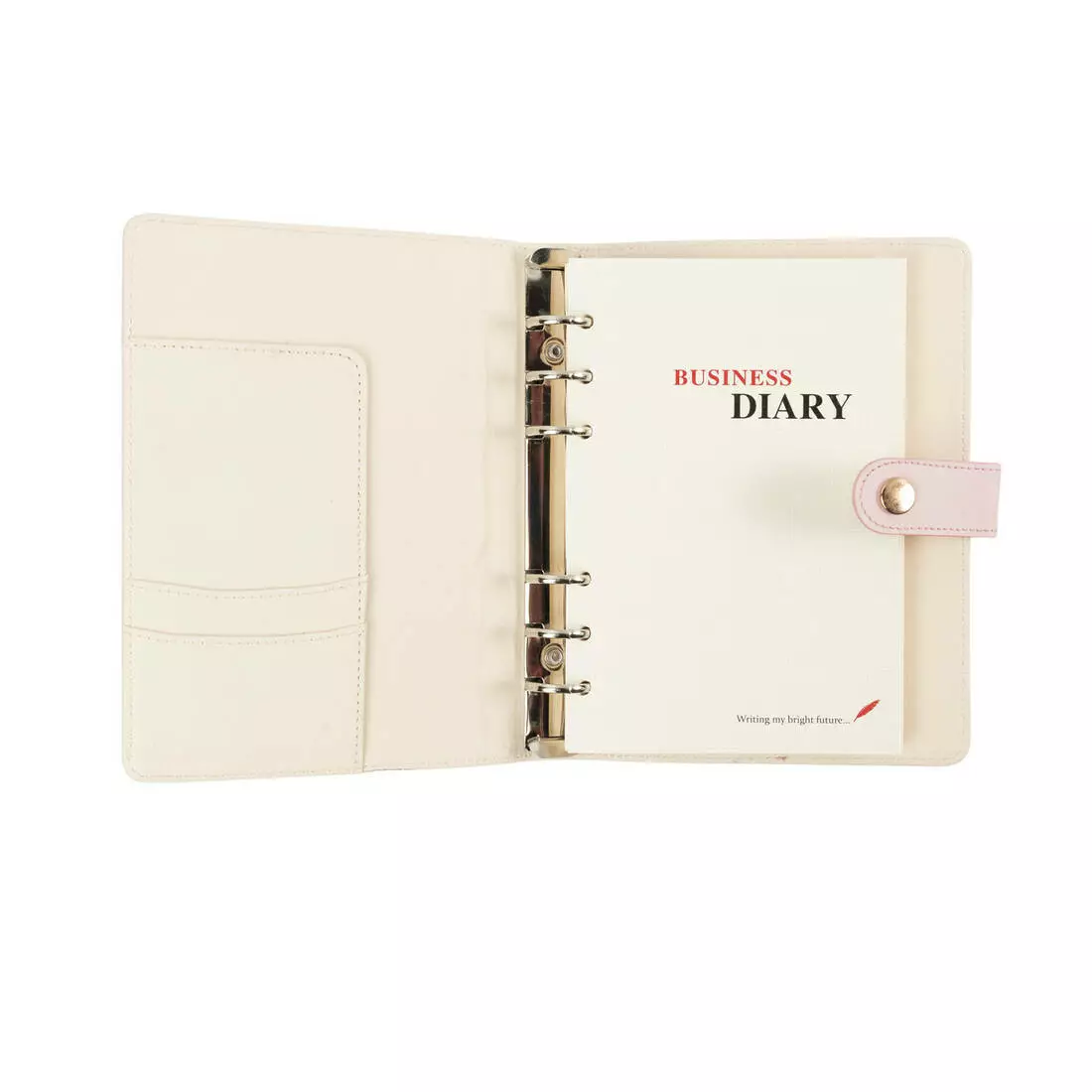 Изготовлен из качественной искусственной кожи. Двойные слои плотно сшиты друг с другом. Блокнот закрывается на кнопку, имеет 6 круглых колец, благодаря которым Вы можете добавлять или удалять листы из планера.