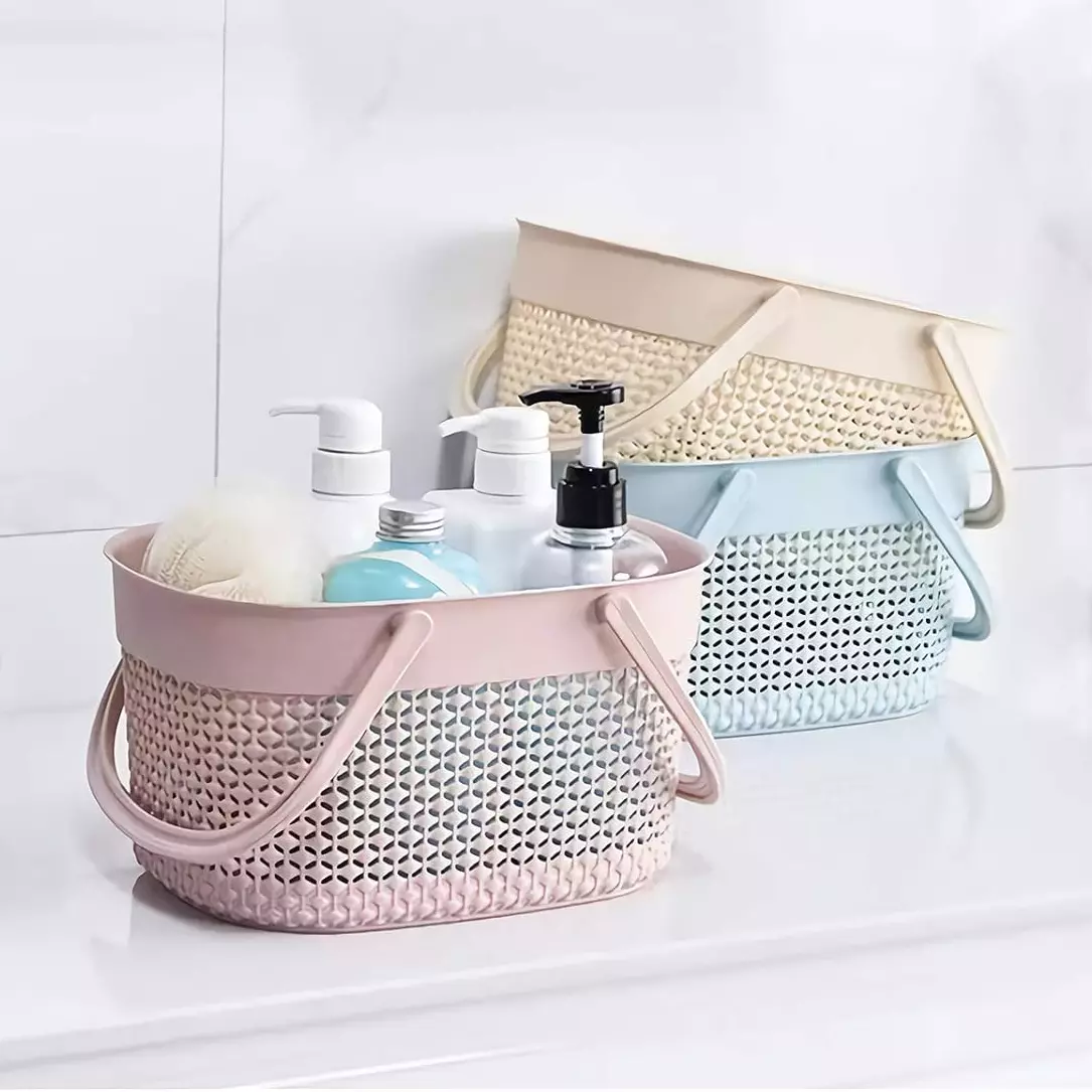 Пластиковая корзина с ручками, 26×15×20см, органайзер для дома, корзина для ванной, розовый цвет