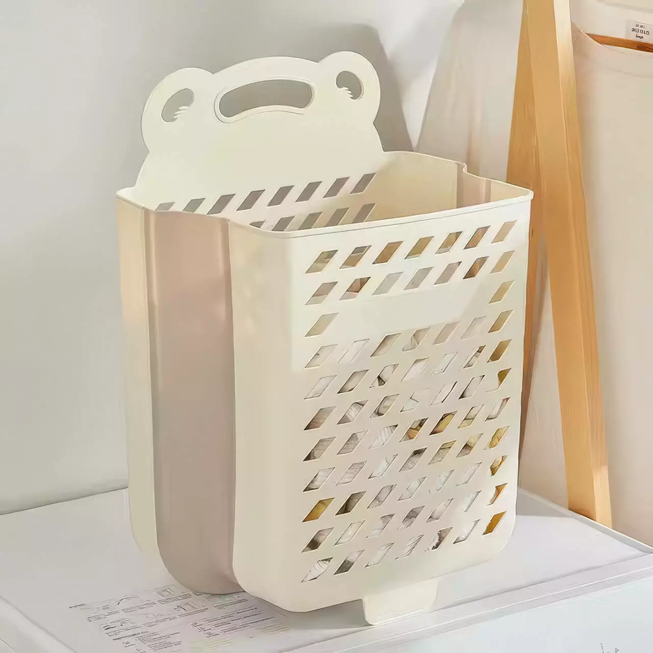 Пластиковый органайзер для хранения белья, складная подвесная корзина большого размера, 48×34×48см, бежевый