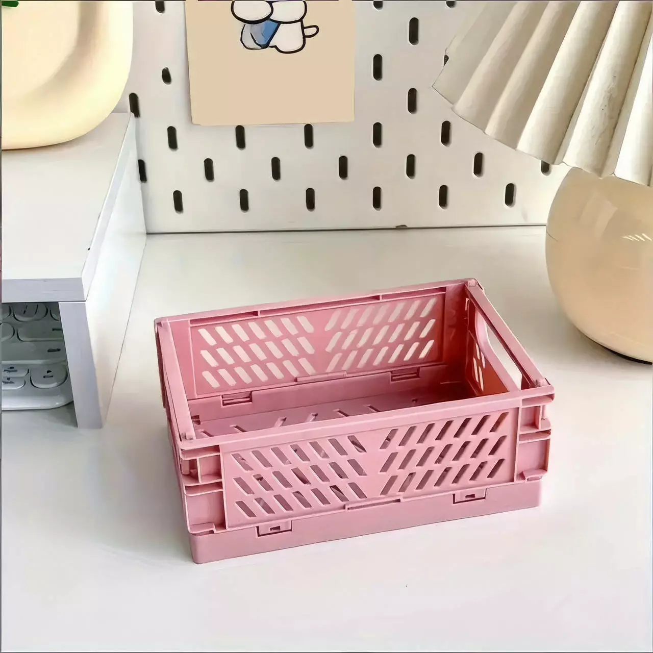 Пластиковый органайзер, складная корзина для хранения, контейнер с ручками, 15×9.8×5.7см, цвет розовый