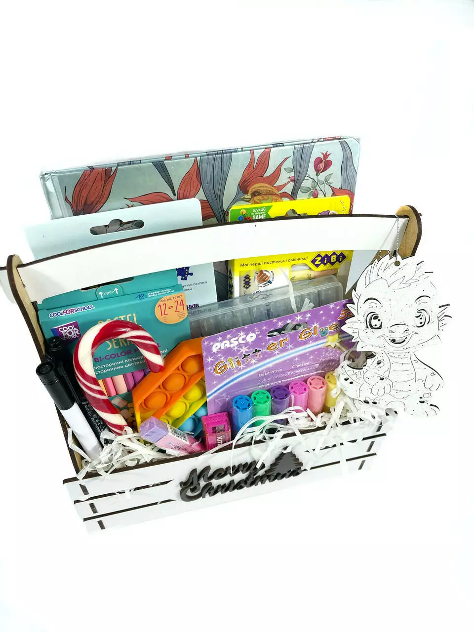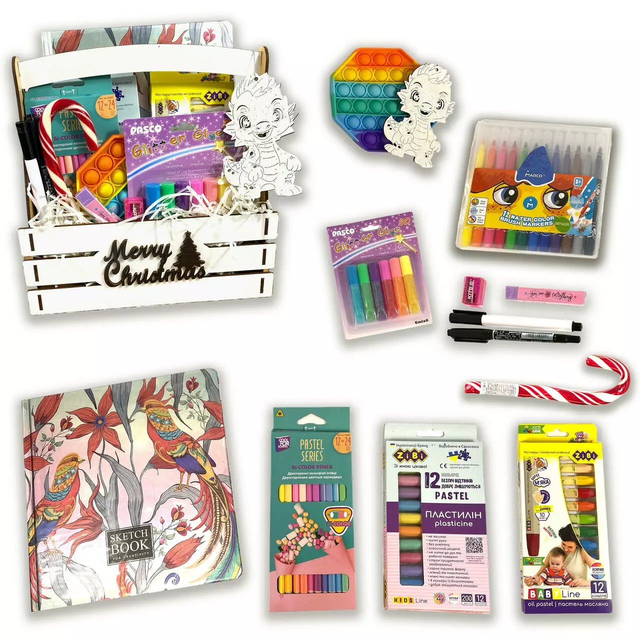 Точилка и резинка всегда будут под рукой для создания непревзойденных шедевров, а поп ит, новогодняя конфета и символ этого года - Дракончик - придадут особое настроение и веселье.