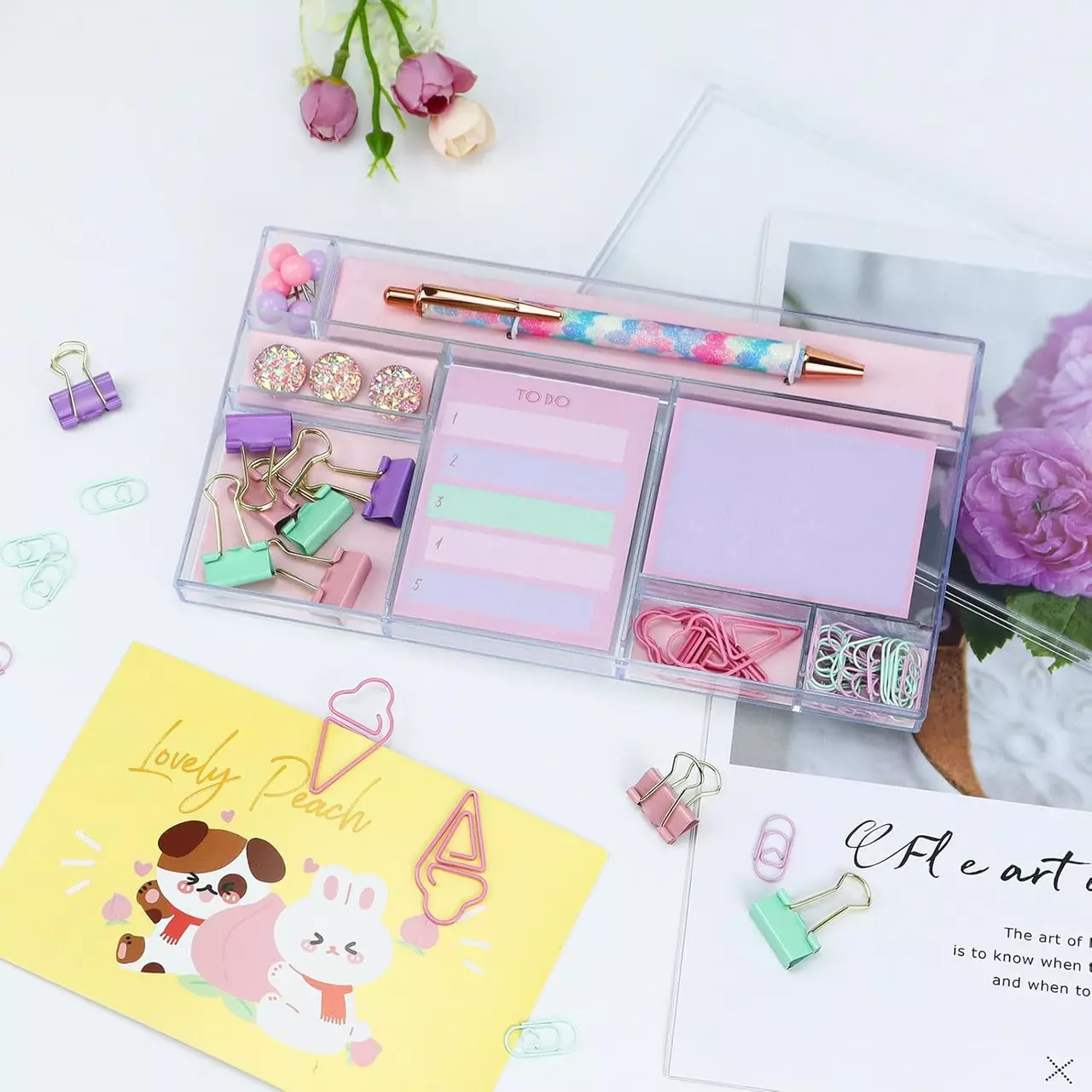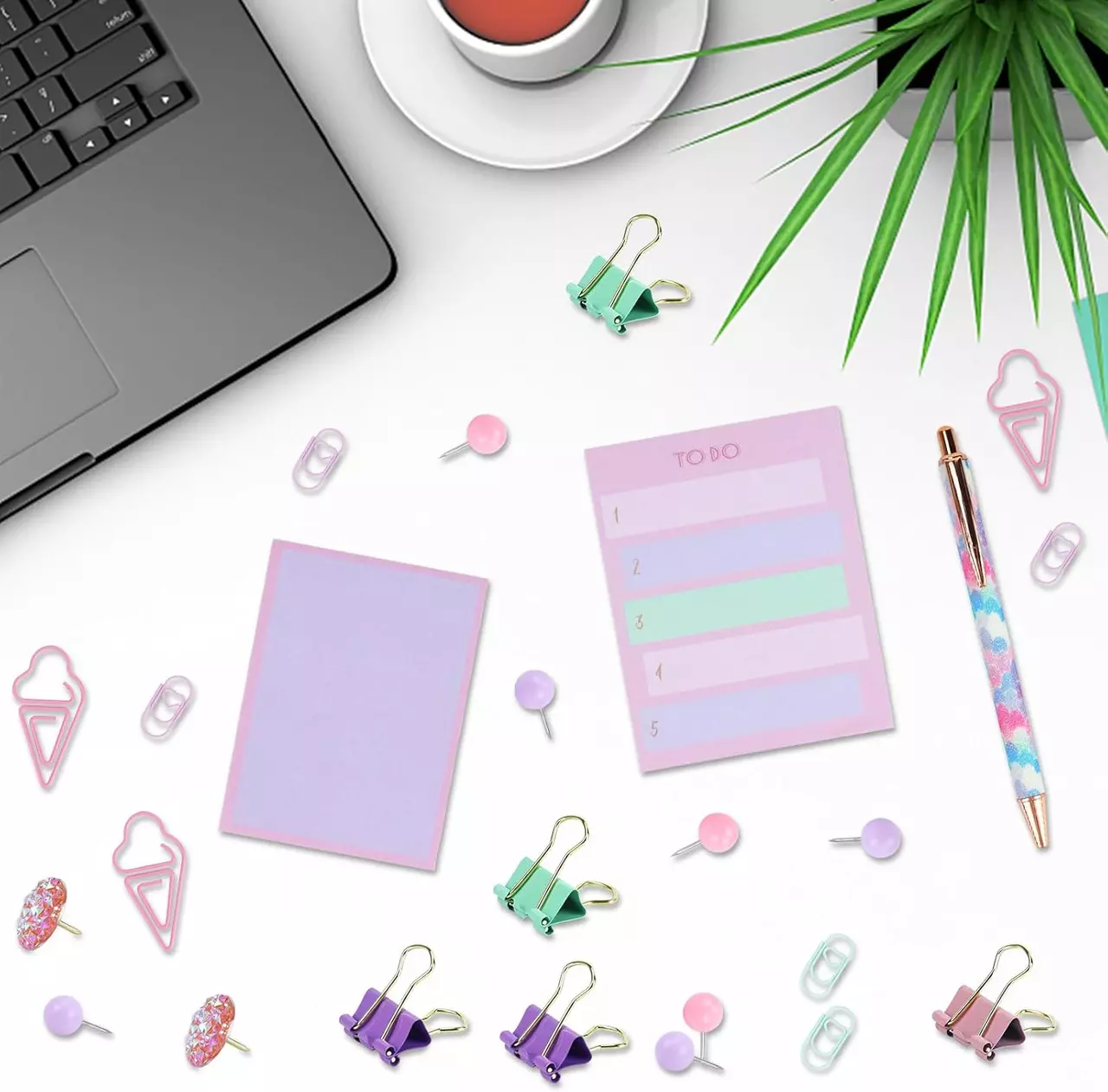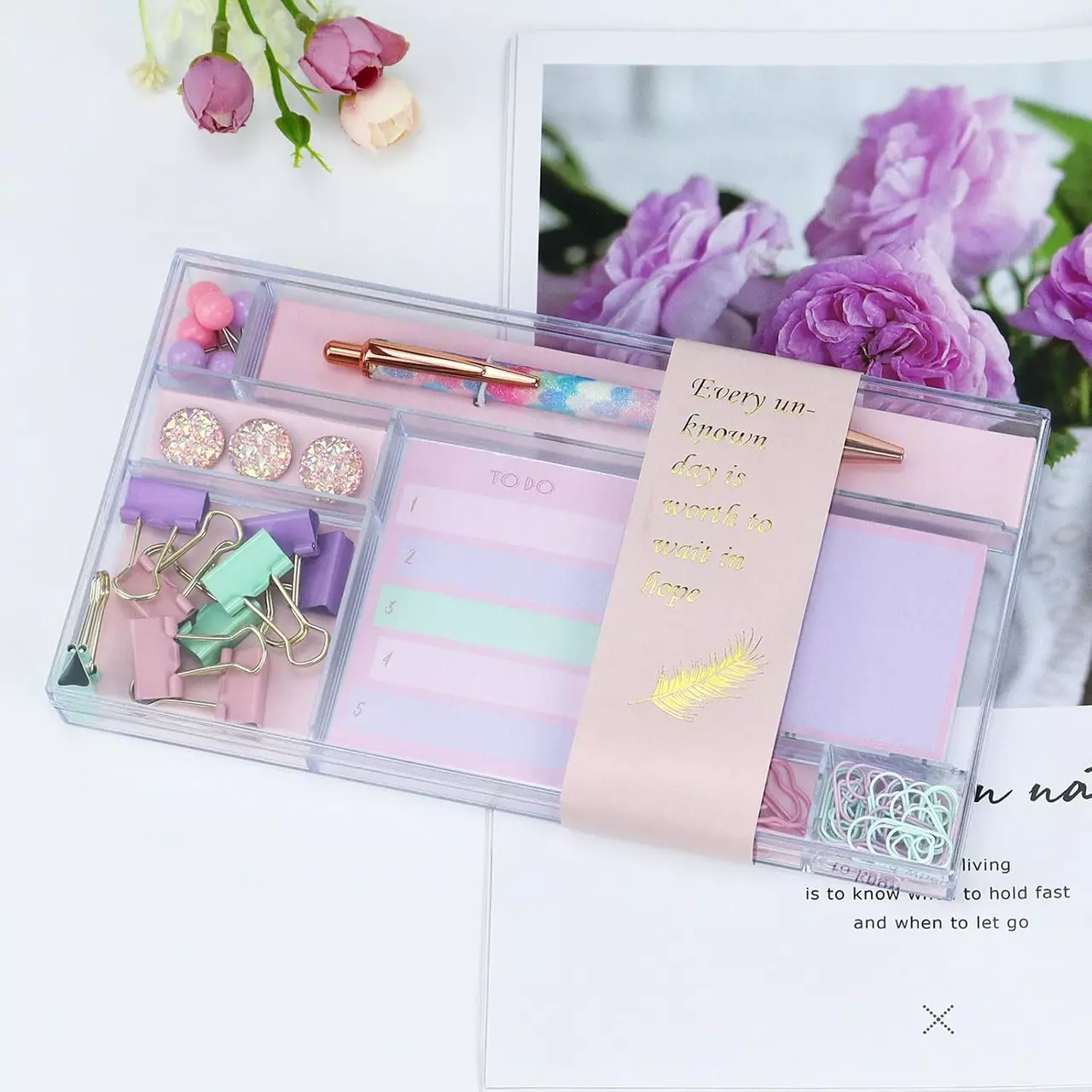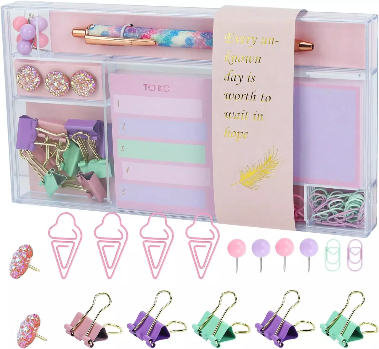 Подарочный набор канцелярии для учебы, органайзер для офиса, ручка, скрепки, биндеры и стикеры