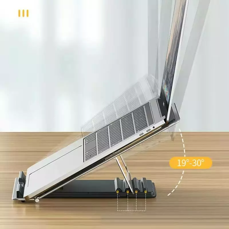 Полая структура подставки обеспечивает отличную вентиляцию и циркуляцию воздуха, предотвращая перегрев ноутбука и поддерживая его в рабочем состоянии. Кроме того, подставка оснащена 4-уровневой регулировкой, позволяя поднимать экран на нужную высоту. При необходимости подставка легко складывается для компактного хранения, что делает её удобной для транспортировки и хранения.