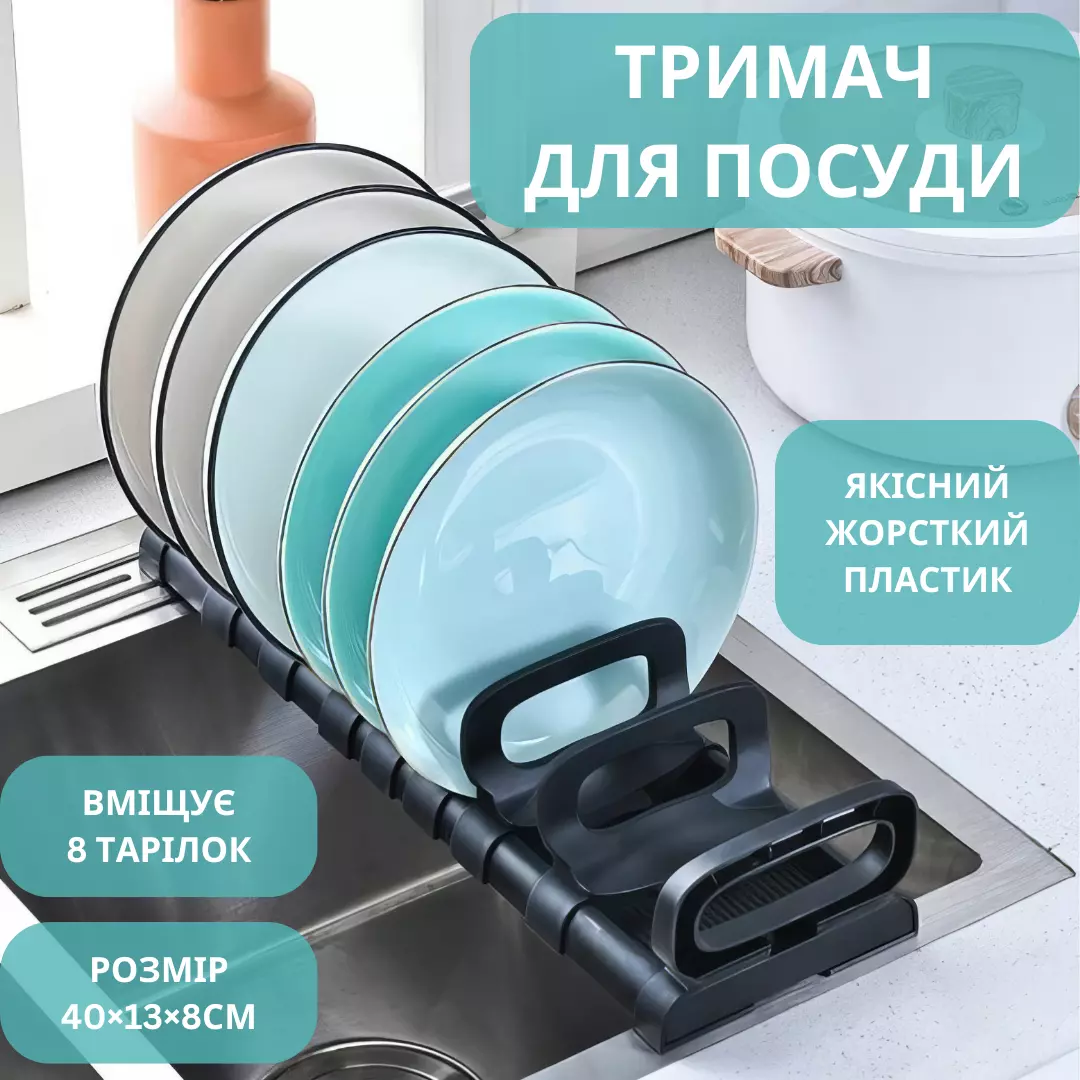 Подставка для тарелок, сушилка для посуды на 8 тарелок, кухонный органайзер, 40×13×8см, черный