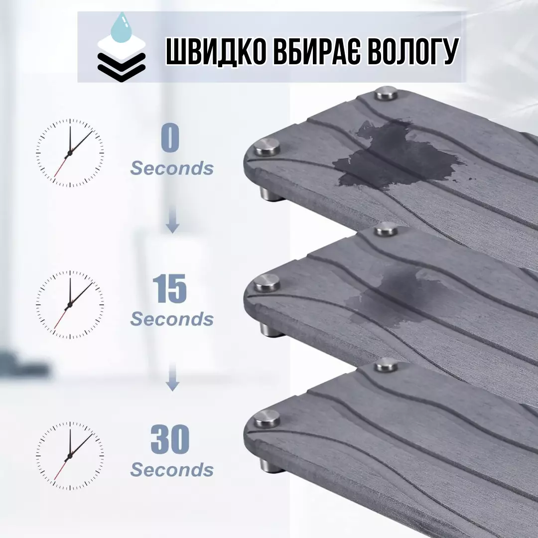 Быстро впитывает влагу — всего за 30 секунд.