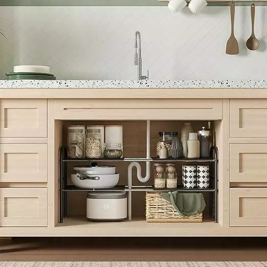 Полка для дома и кухни,прихожей, кладовки, ванной комнаты под раковину двухъярусная,трансформер,универсальная