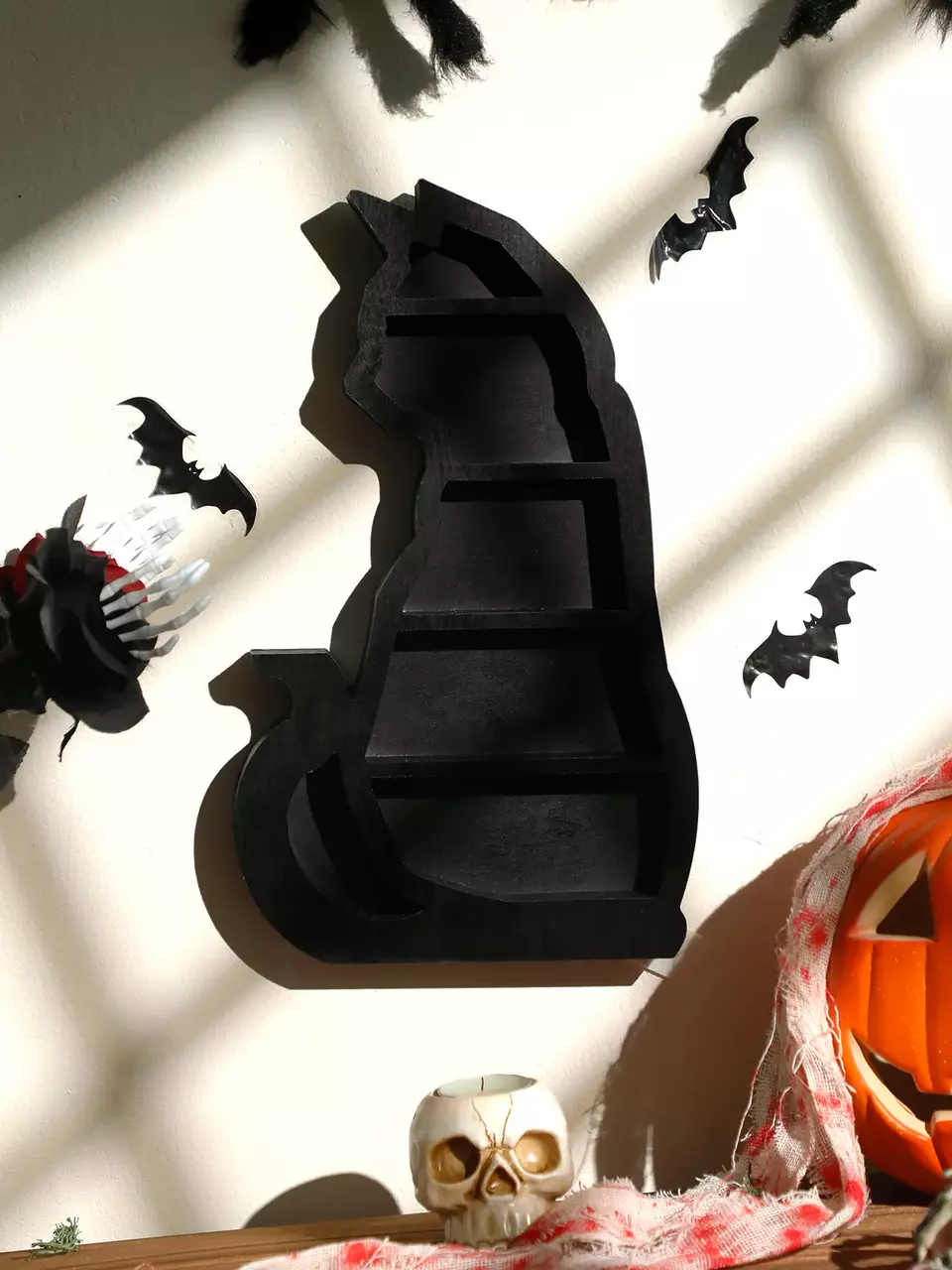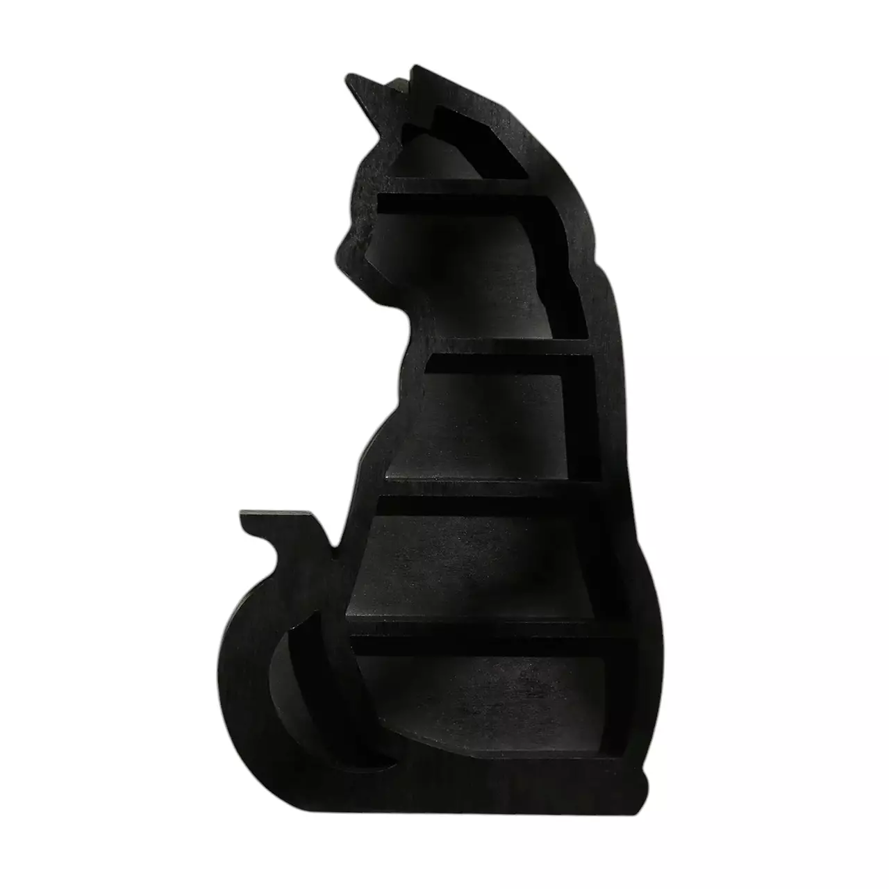 Полка настенная из дерева Кошка, полка деревянная для для украшений, черная, в размере 34×20.5см