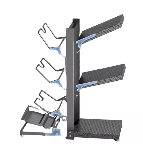 Полка-подставка для кастрюль на 3 полки двухсторонняя с 3 держателями для крышек из углеродистой стали,серая