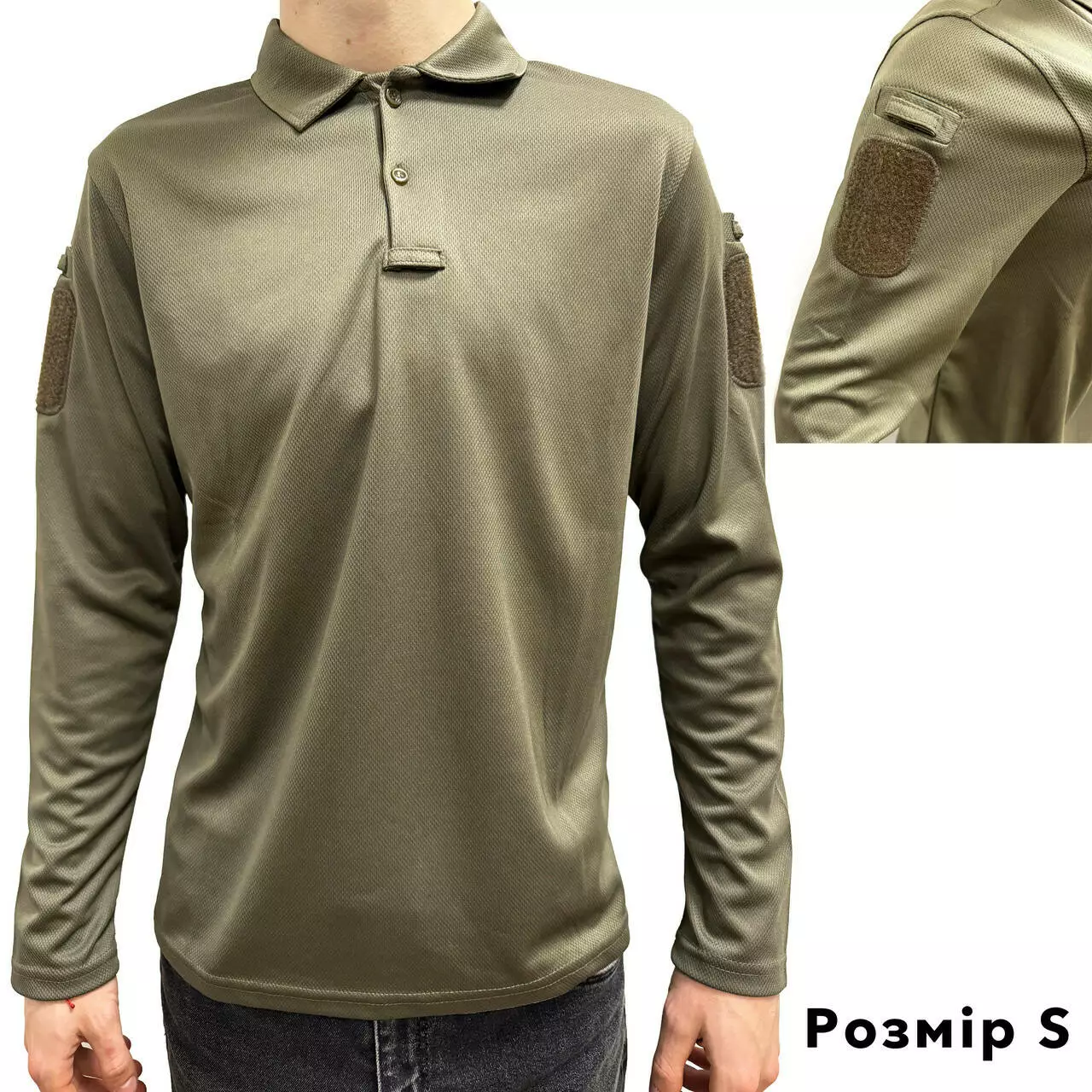 Поло для мужчин с долгим рукавом, тактическая рубашка с липучками на рукавах Хаки S