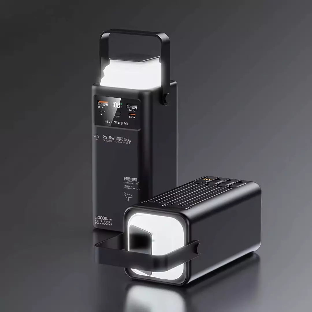 Портативный внешний аккумулятор с быстрой зарядкой 50000мАч, павербанк с фонариком и 4 кабелями Black