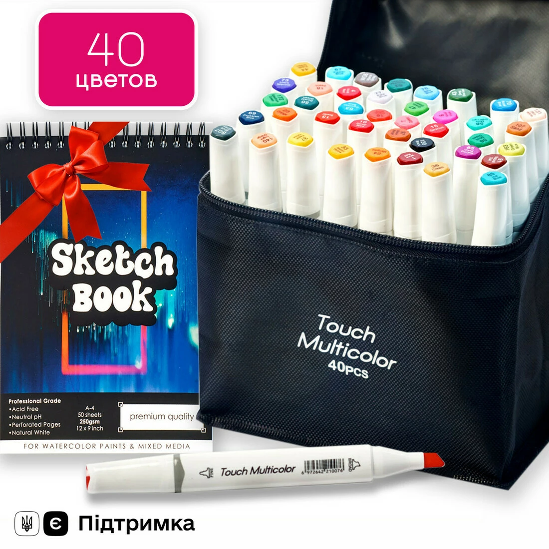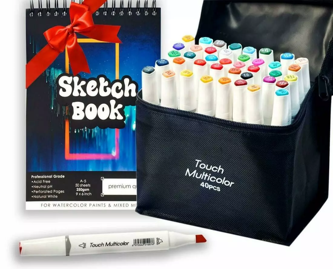 Вы покупаете Набор маркеров двусторонних Touch Multicolor 40 цветов и в подарок получаете Бумагу для скетчинга и рисования в формате А5.