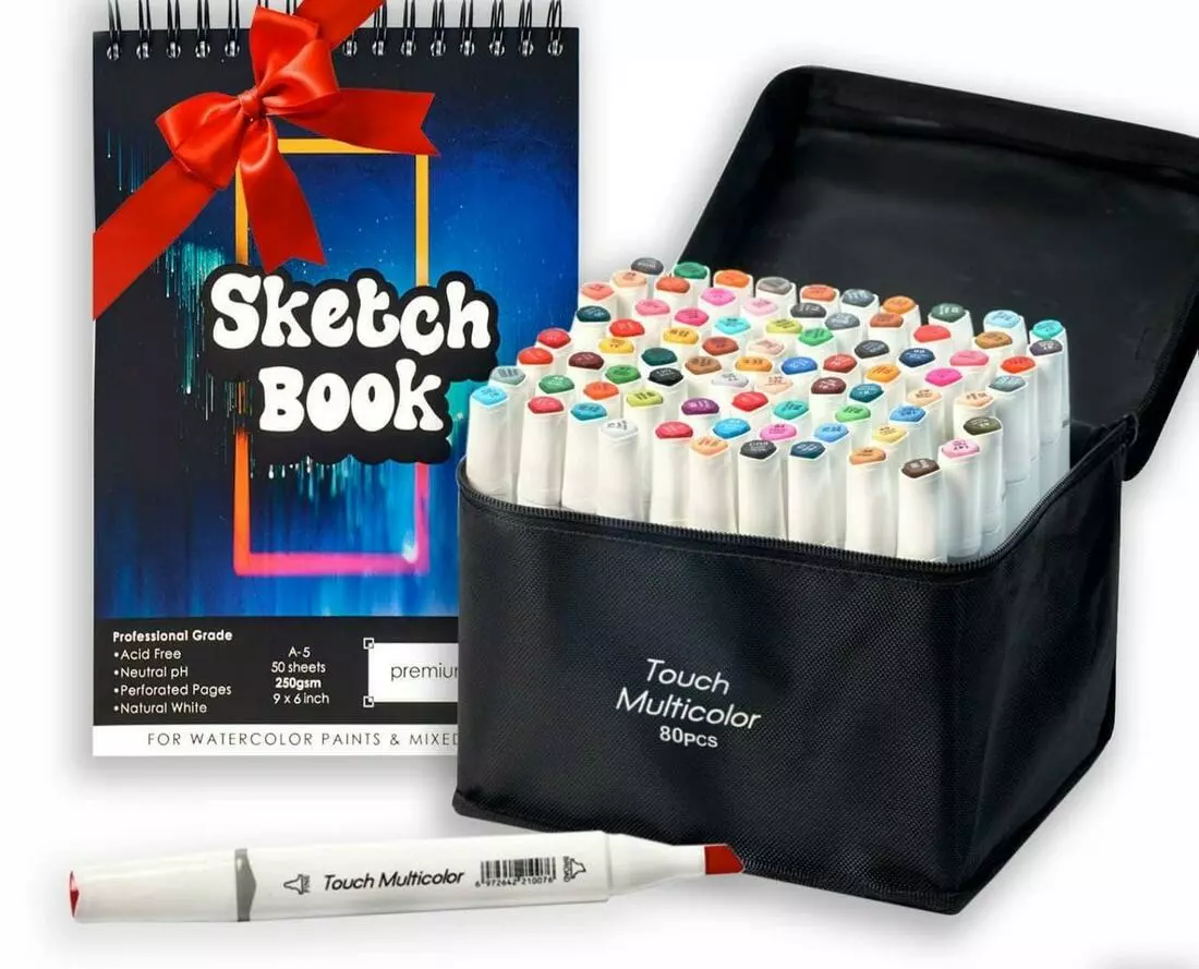 Профессиональные скетч маркеры для художников Touch Multicolor 80 цветов + подарок Альбом А5 на 50 листов