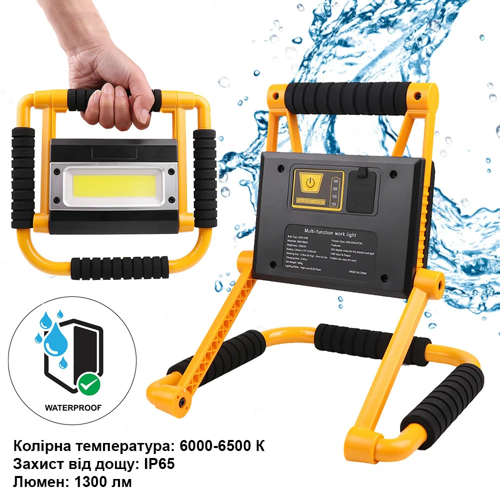 Прожектор светодиодный аккумуляторный 1300 лм Watton WT-328 20 Вт фонарь на 360° c Powerbank+ПОДАРОК