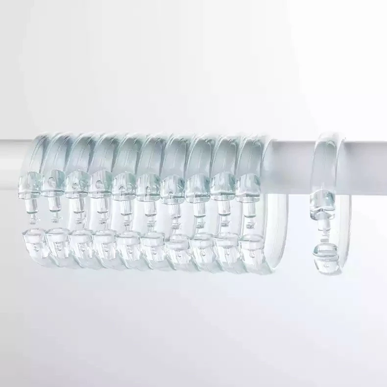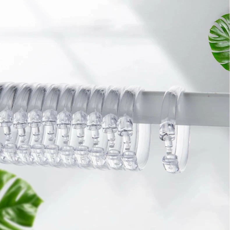Прозрачные кольца для крепление душевой шторки к карнизу.