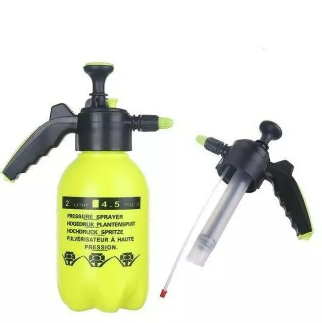 Ярко-жёлтый ручной помповый опрыскиватель объёмом 2 литра — удобный