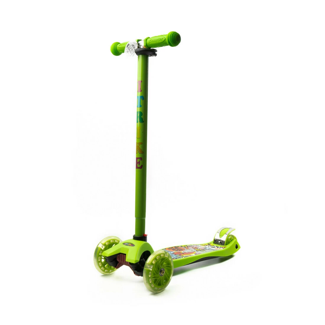 Самокат детский трехколесный iTrike MAXI JR 3-055-1-GR со светящимися колесами, руль регулируется, Салатовый