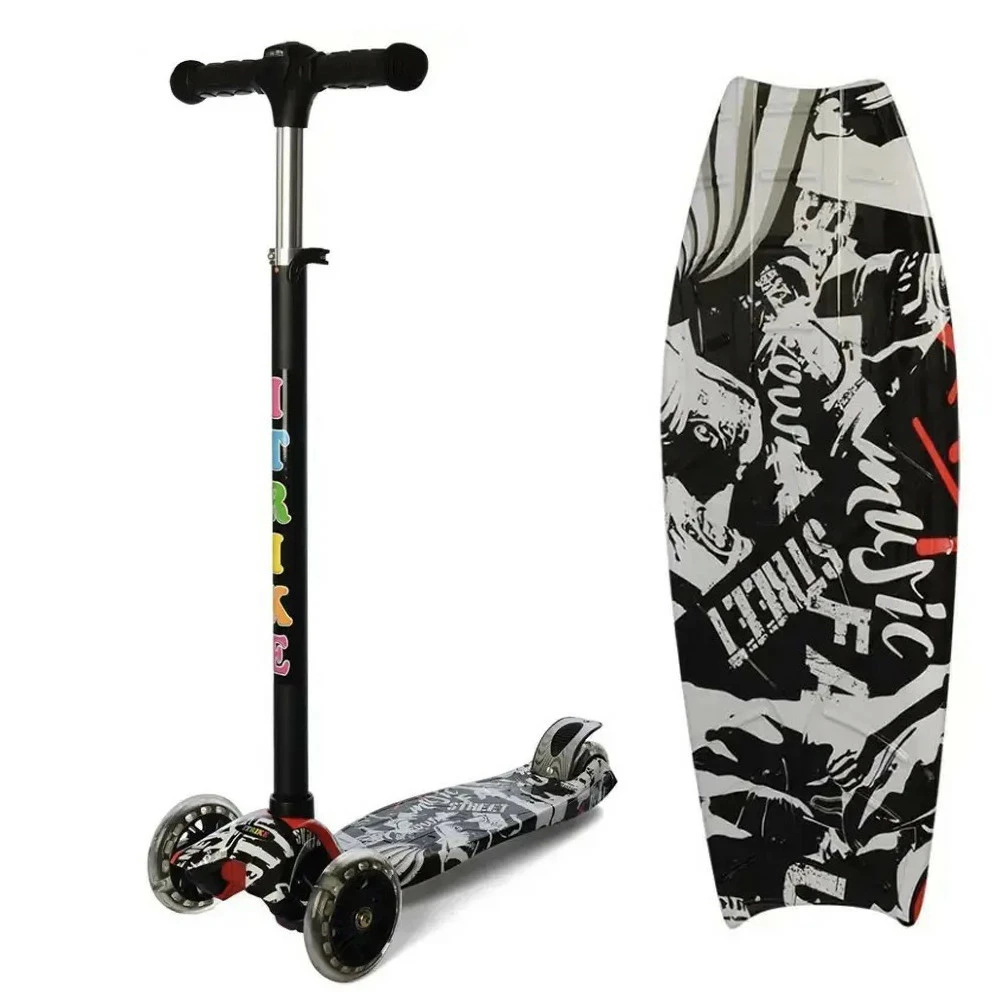 Самокат iTrike Maxi JR 3-055-L поможет весело и с радостью проводить время, будет способствовать развитию координации движений и умению держать равновесие. Данная модель имеет простое и удобное управление, хорошую устойчивость и подсветку во время езды. Поверхность подножки украшена оригинальным изображением. Руль самокат регулируется по высоте и оборудован фарой с подсветкой.